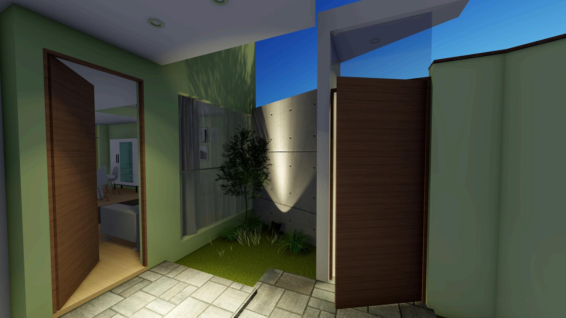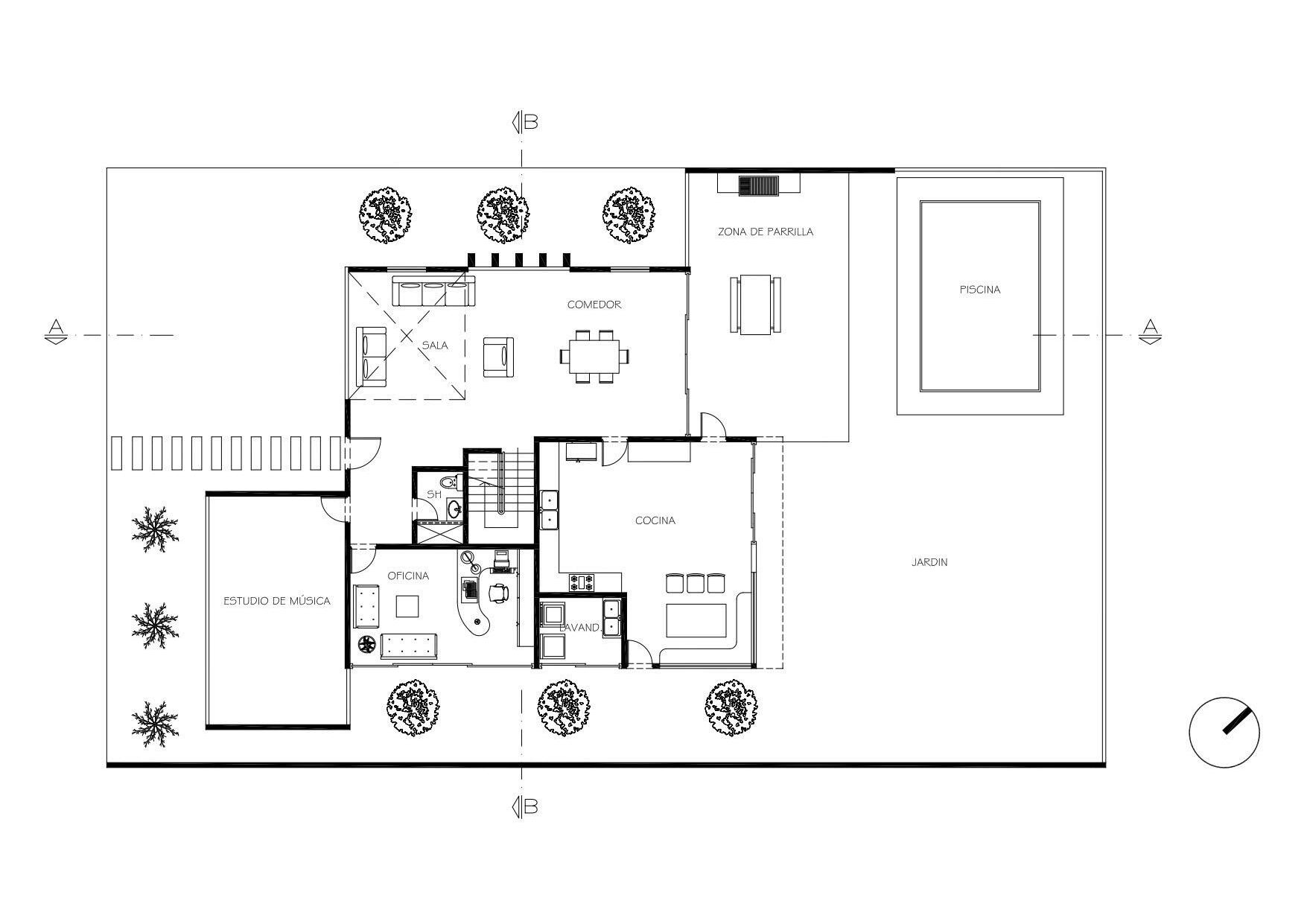 Povis solicitó una vivienda de dos pisos en un terreno de 500 m2 de área para él y tres personas más. Las indicaciones dadas fueron: moderno, mucha iluminación, práctica y espaciosa y predominar el área verde.