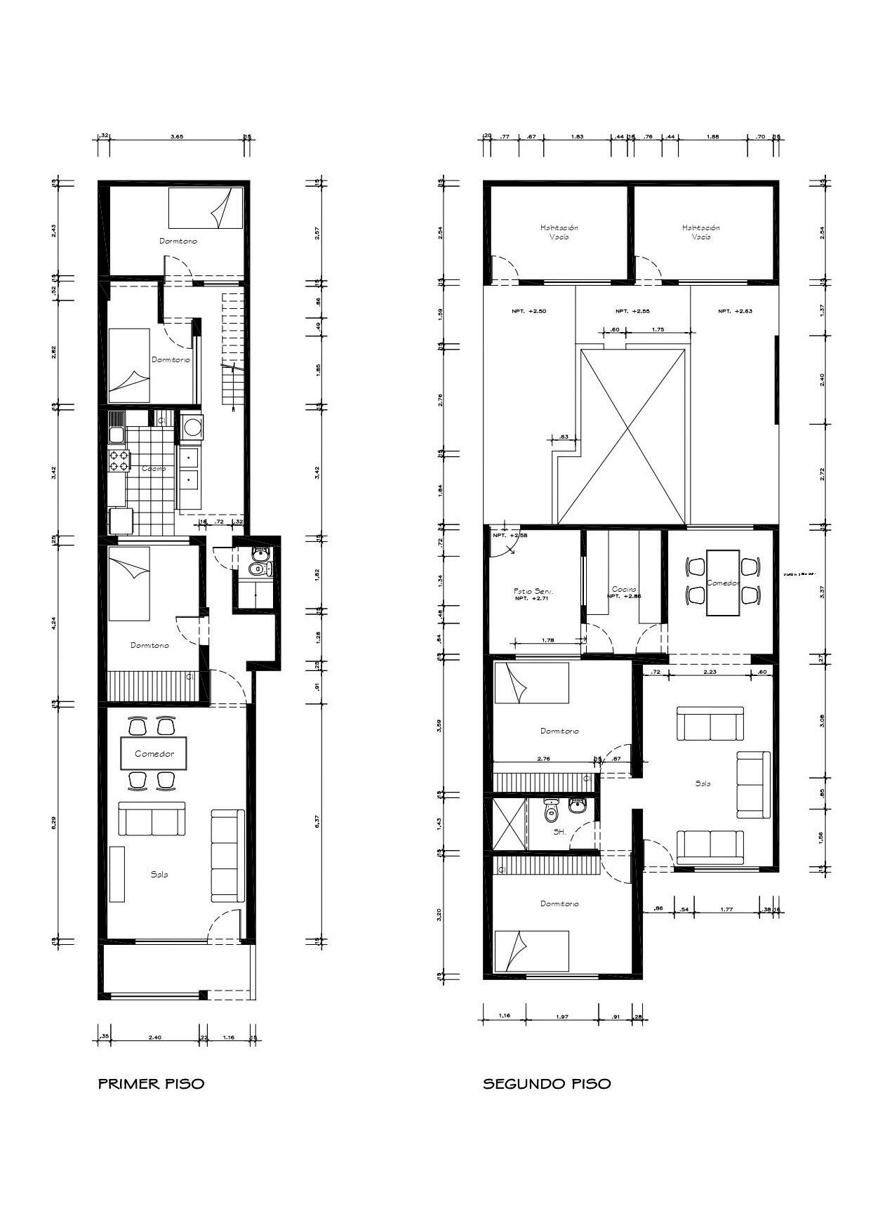 Se generó los cambios necesarios para el primer nivel y se incorporó un jardín en la parte delantera. Para el segundo nivel, se realizó una distribución totalmente nueva obteniendo los dos departamentos solicitados.