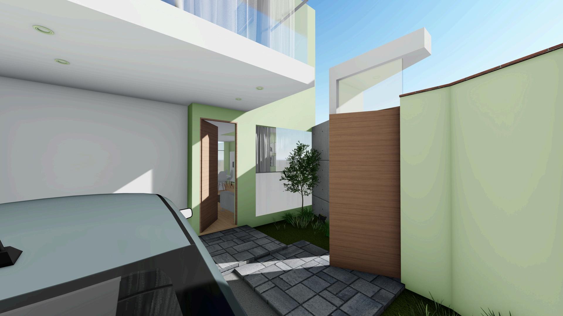 Para este proyecto se solicitó el diseño de una casa unifamiliar de dos pisos para dos personas, madre e hija. Como indicaciones principales: estacionamiento interno, jardín trasero, sala/comedor espacioso, estar en el segundo nivel y habitaciones con walk-in-closet y baño propio.