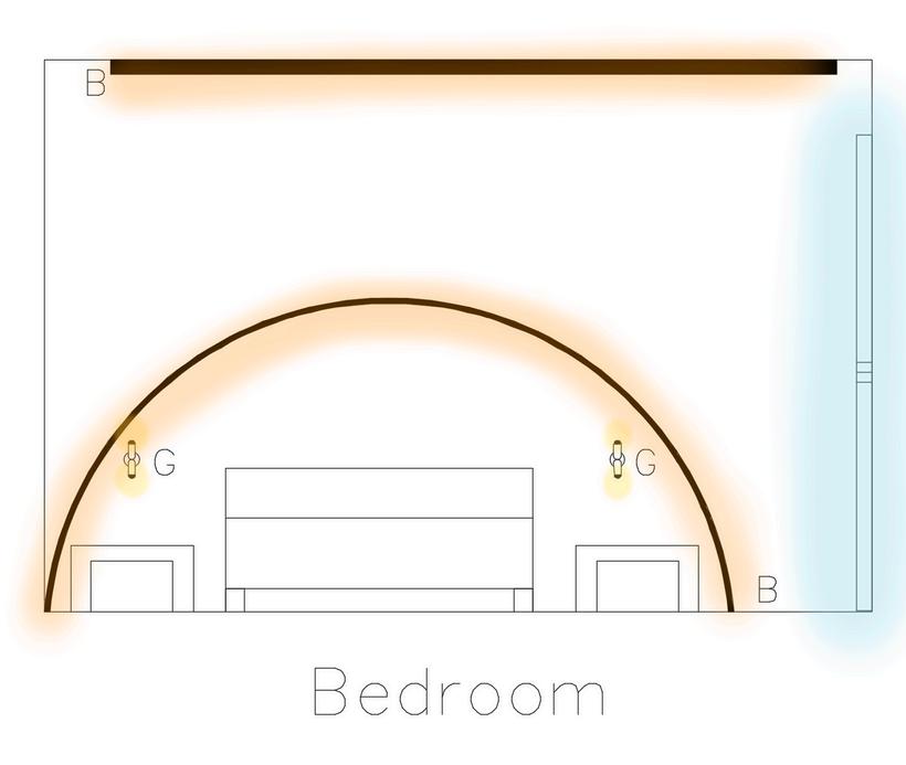 Bedroom can be converted to a blackout space, where the user can use built-in light therapy features. The room is convertible in order to support light therapy.
