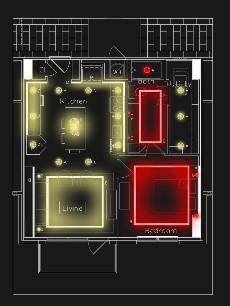 Utilize daylight coming into the space, place general daylight mimicking fixtures. Warm night lighting throughout the space for wayfinding, insomnia, panic, confusion, and PTSD episodes.