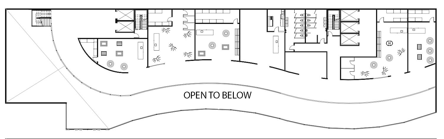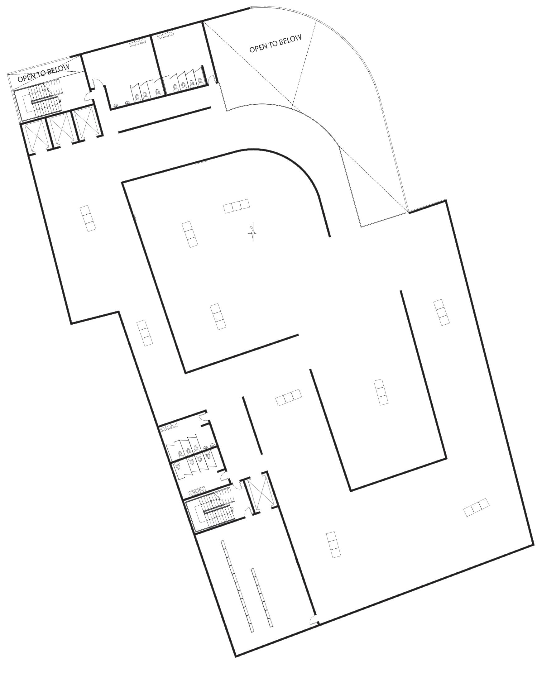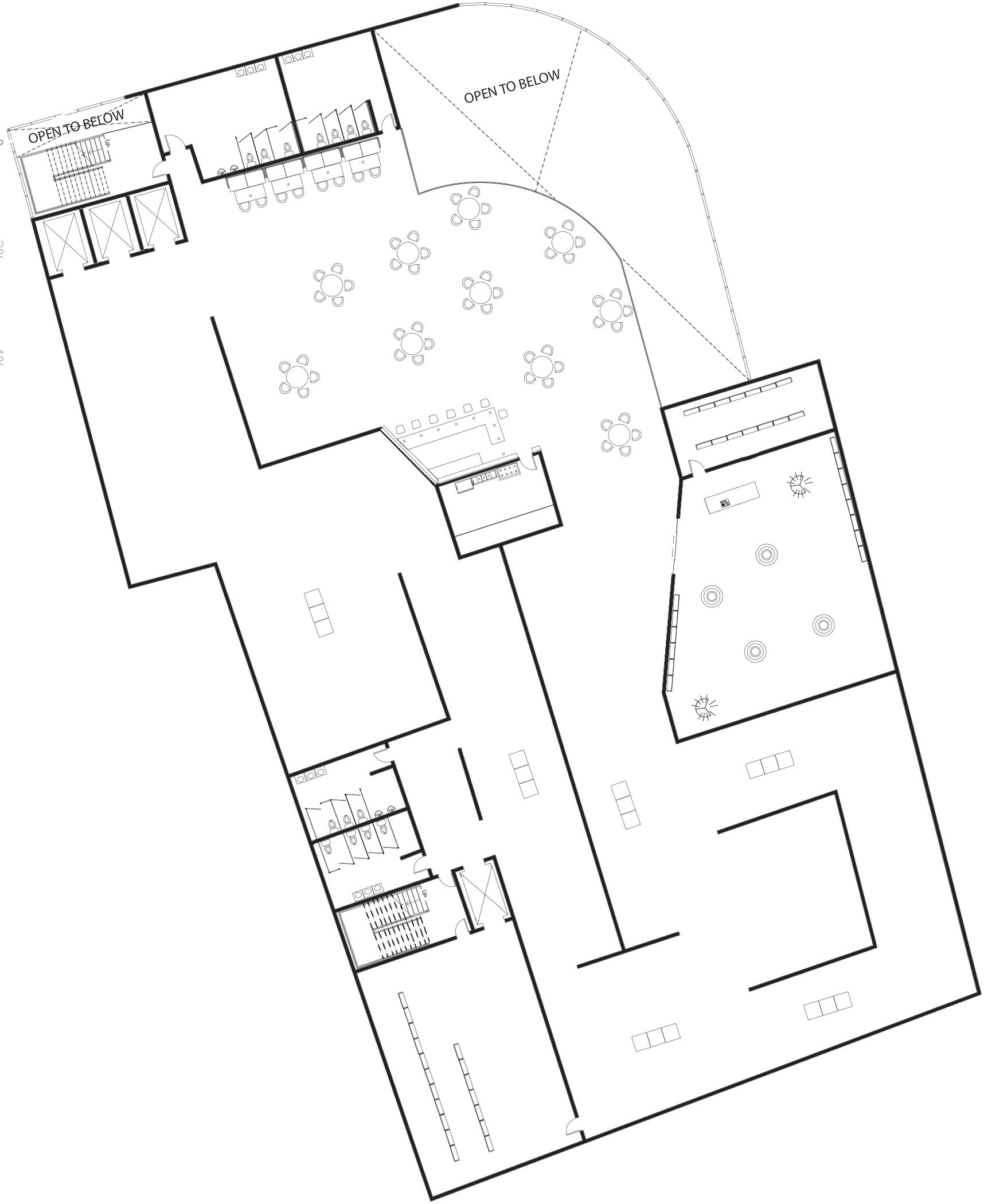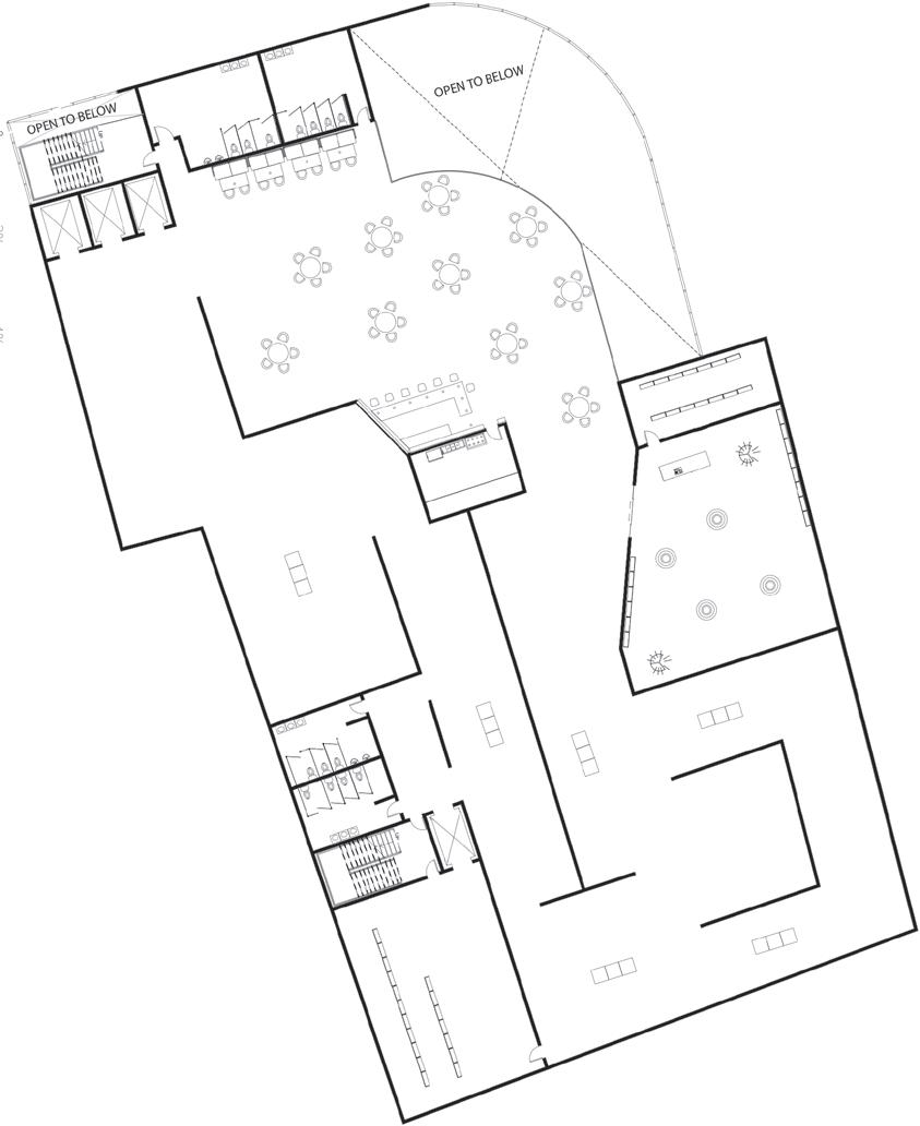 The office spaces are open concept to promote collaboration and a team environment. The individual offices are located on north side of building to allow for the most natural light into the space as possible. The flooring is made of reclaimed wood, which is intended to preserve and keep a part of the history of the district and give a new purpose to old materials.