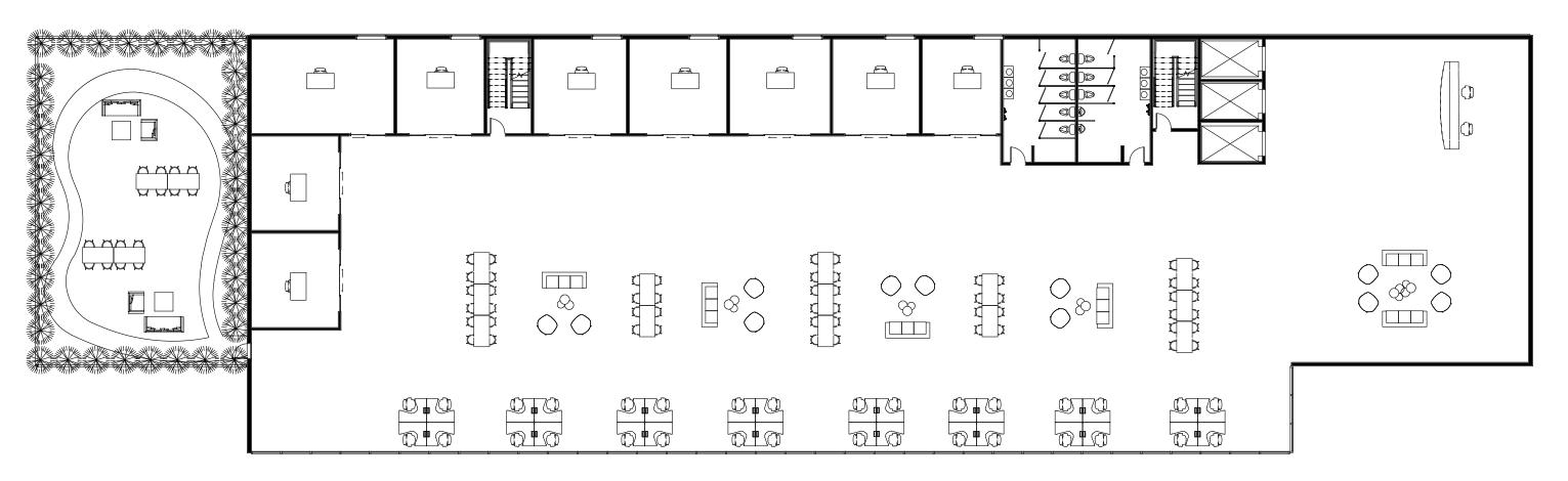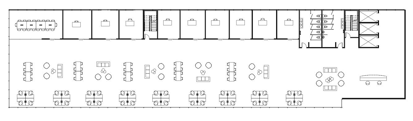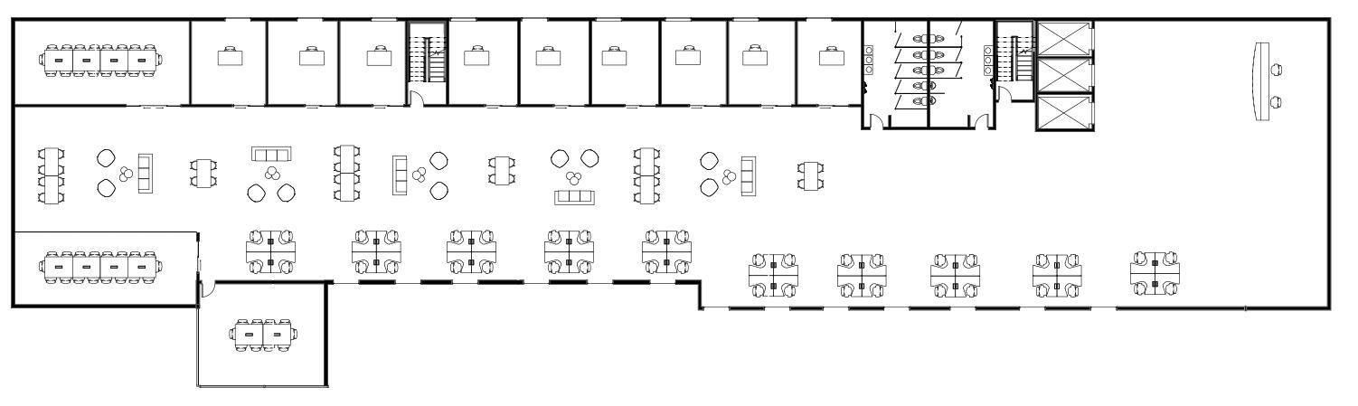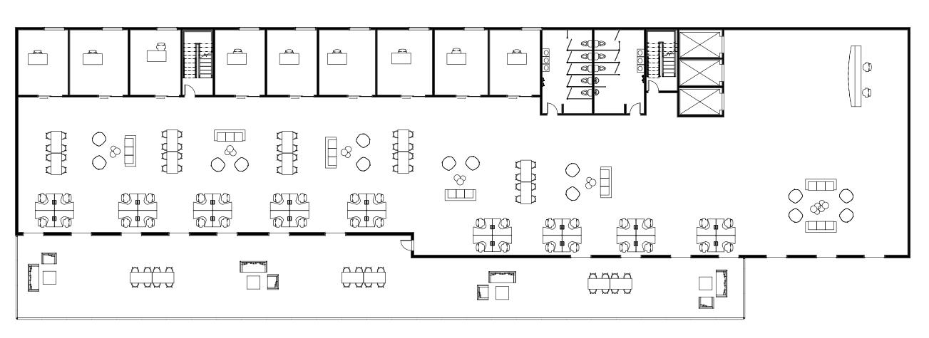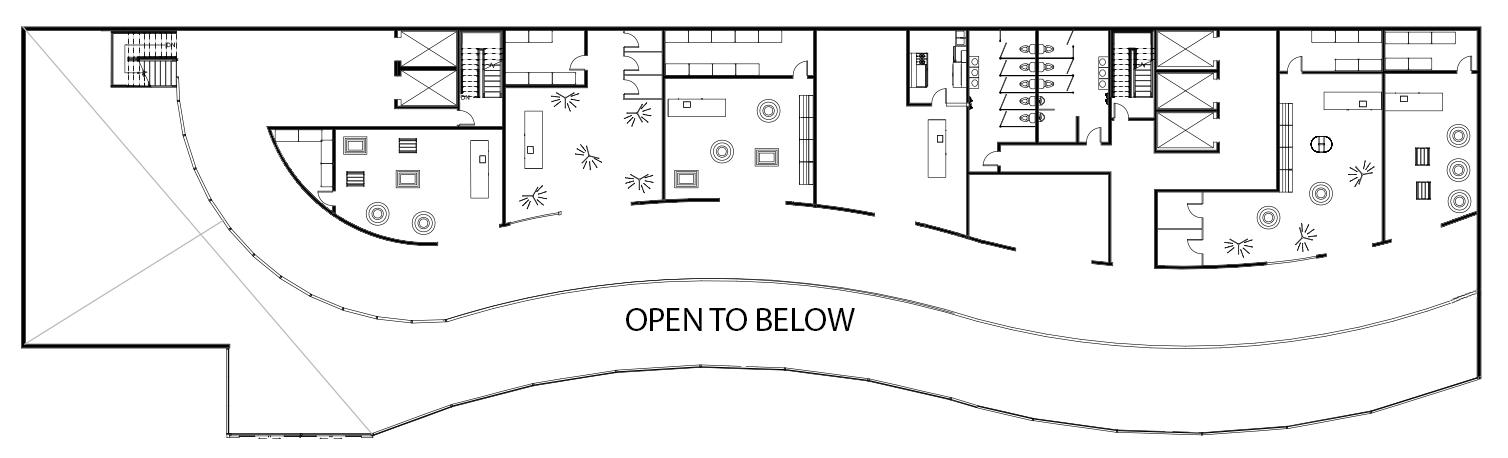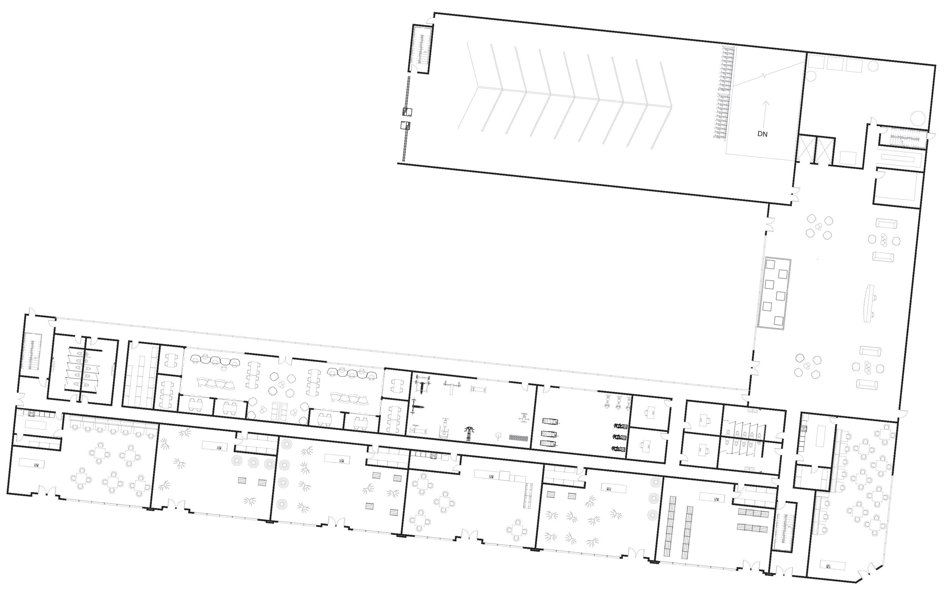 The office spaces are open concept to promote collaboration and a team environment. The individual offices are located on north side of building to allow for the most natural light into the space as possible. The flooring is made of reclaimed wood, which is intended to preserve and keep a part of the history of the district and give a new purpose to old materials.