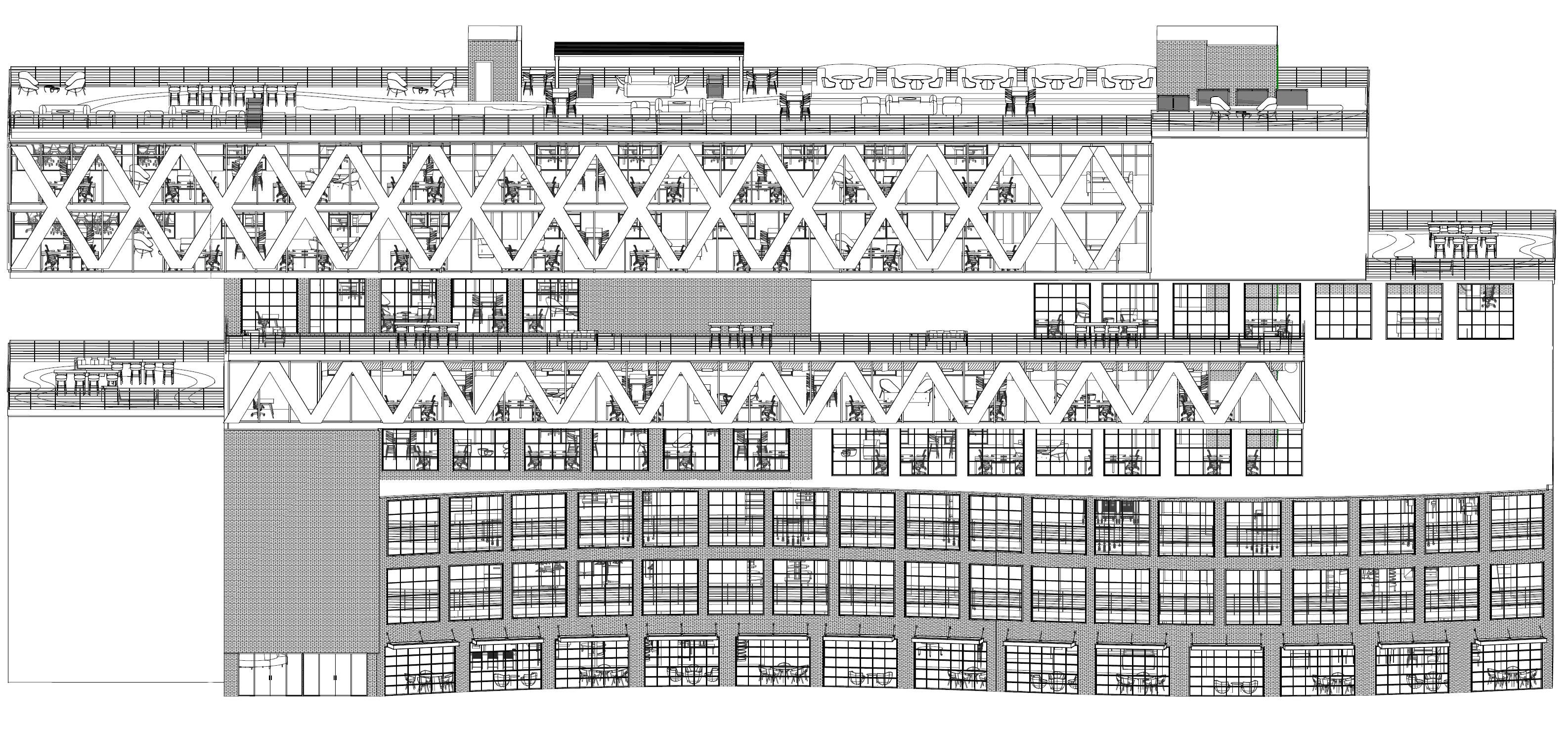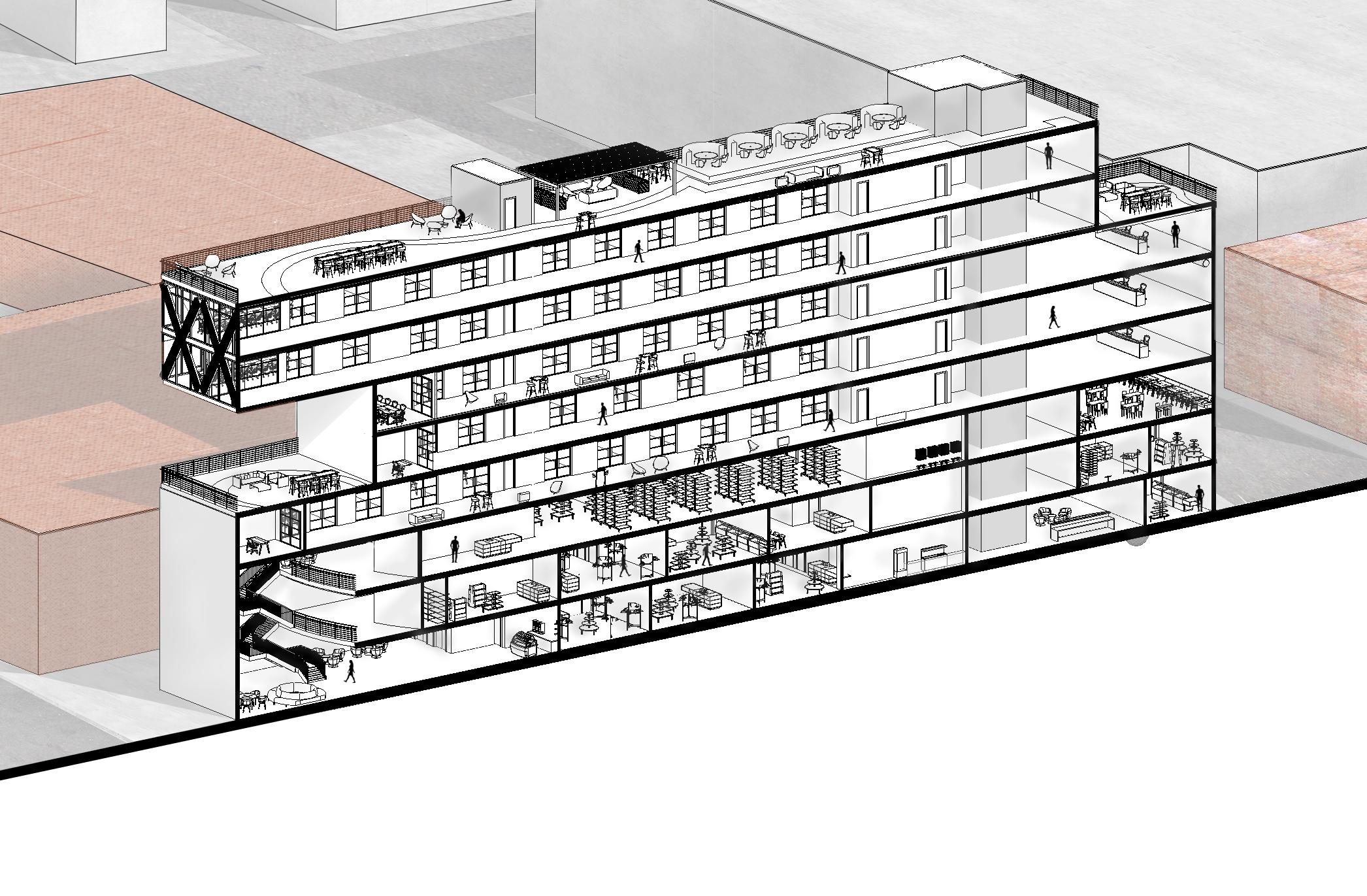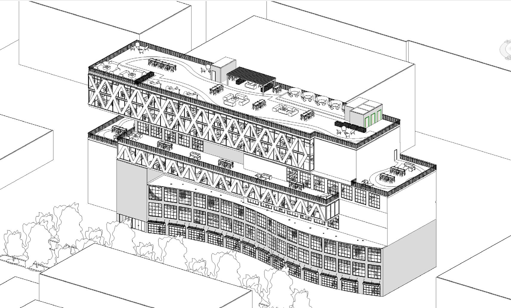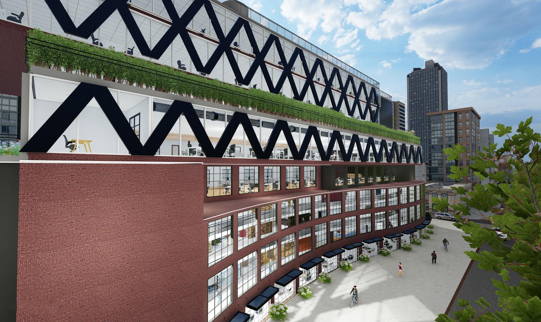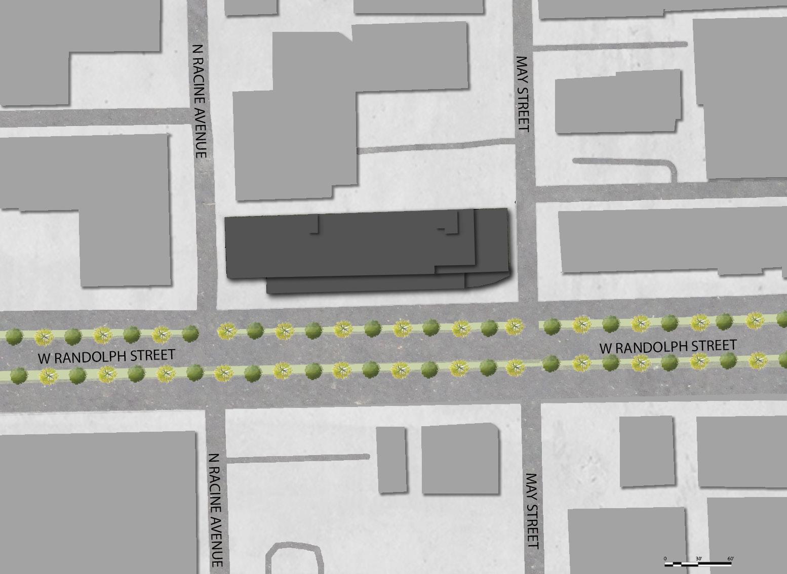 Eleven44West is located in the Fulton Market District of Chicago, Illinois. Fulton Market is a historic district near downtown Chicagothat was once full of factories and workers, and is now a lively, bustling district full of shopping, restaurants, hotels, and businesses. The design is a mixed-use building that is 40% commercial and 60% office space. The goal of the project was to stay true to the history of the district, while also bringing in modern, new life into the area. It was also a priority to provide a space for small businesses to thrive. I also wanted to respect the urban fabric and design a building that would look like it belonged in the city. The design utilizes materials that were used for buildings back when the factories were open and functioning, such as brick, iron, and steel in order to stay true to the history of Fulton Market.