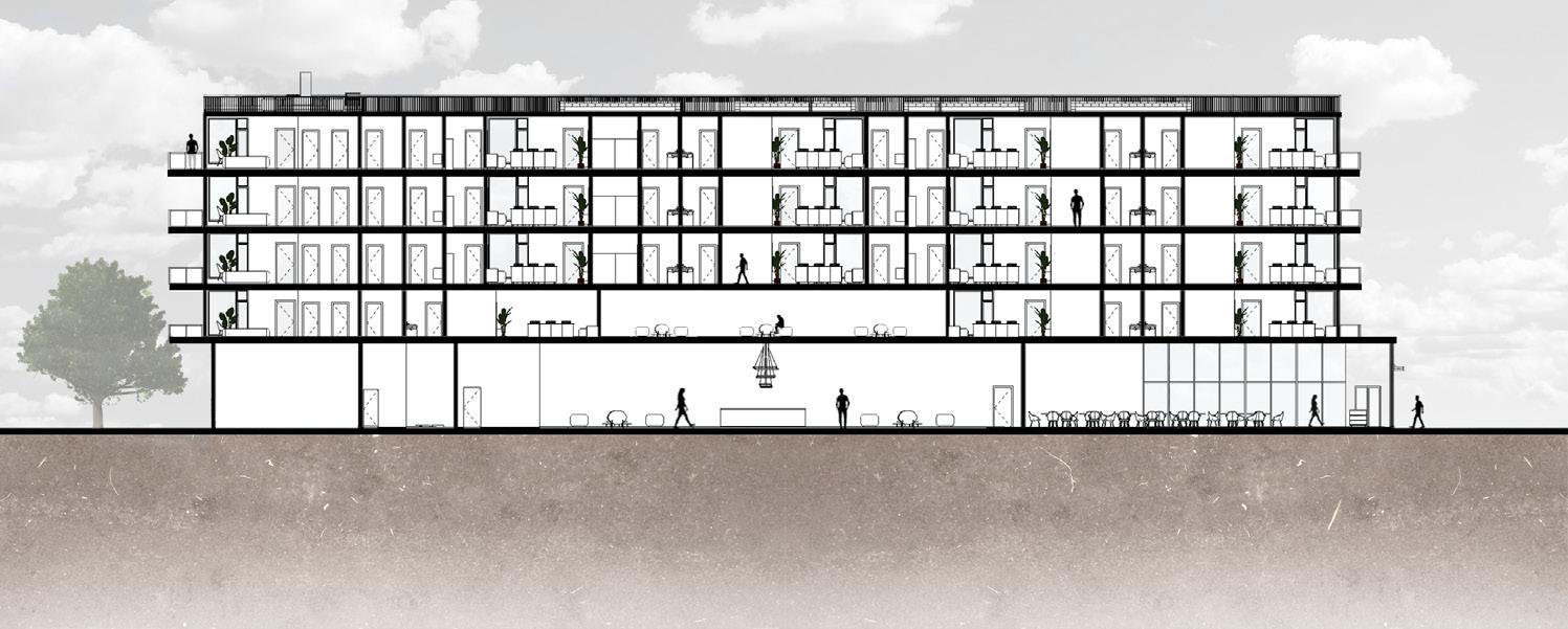 The Balboa is a mixed-use, multi-family apartment compex located in Columbia, Missouri. The project features retail and commercial businesses on the first floor, as well as a courtyard and amenties for residents, apartments on the second through fifth floor, and the rooftop consists of solar panels, garden, and a lounge. The target market of the complex is young millenials and new college graduates with or without families. One of the main goals of the design was to promote a sense of community throughout the complex and amongst residents. I wanted to design a space where residents are able to find a community of friends because they might be moving to a new city where they do not know anyone and it is important to make new connections. It was also a priority to provide a space for small businesses to thrive. The design also uses sustainable construction materials, such as bamboo. Another goal of the project was to provide a space for the younger millenials and new college graduates to live because there are really no complexes specifically geared toward that demographic in the city of Columbia.