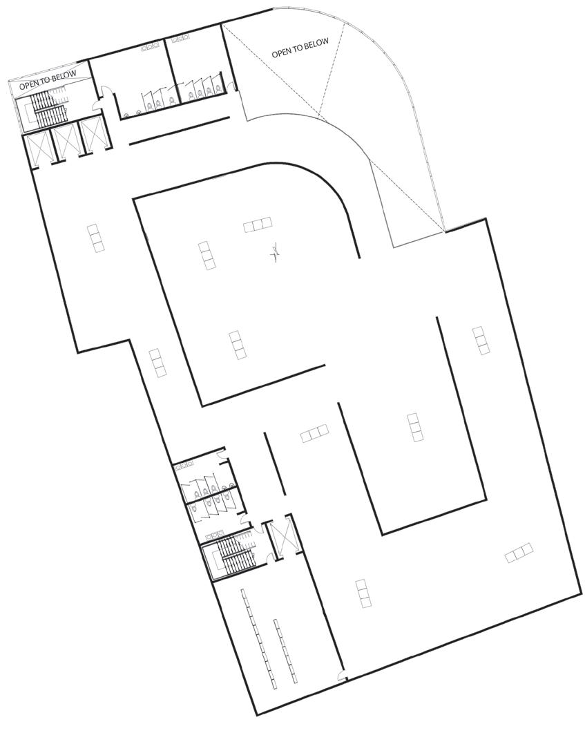 The basement is employees only. The elevator leads to floors above for easy access to offices and gallery spaces.