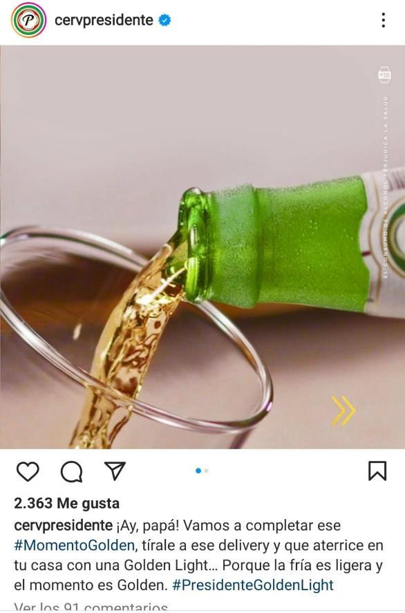 Decir tanto de manera textual como de manera implícita que la Golden es la mas ligera de todas las bebidas de presidente