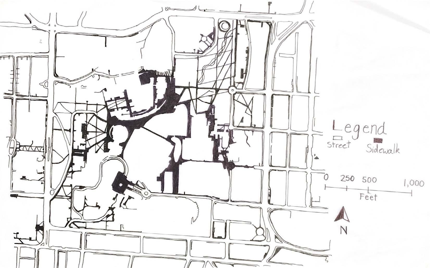 Pictured below is a thematic map of University of Cincinnati’s campus and the different borders and districts that can be found on the block. Using tracing paper, architectural rulers, and hand drawing