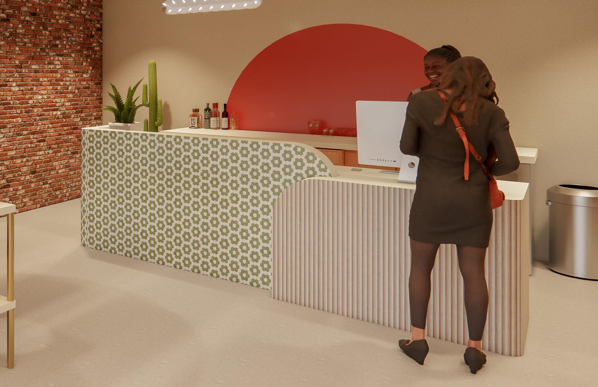 - The custom shape is inspired by plant leaves, that way keeping the store’s brand consistent.