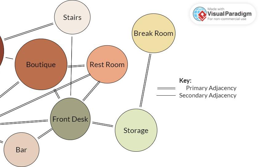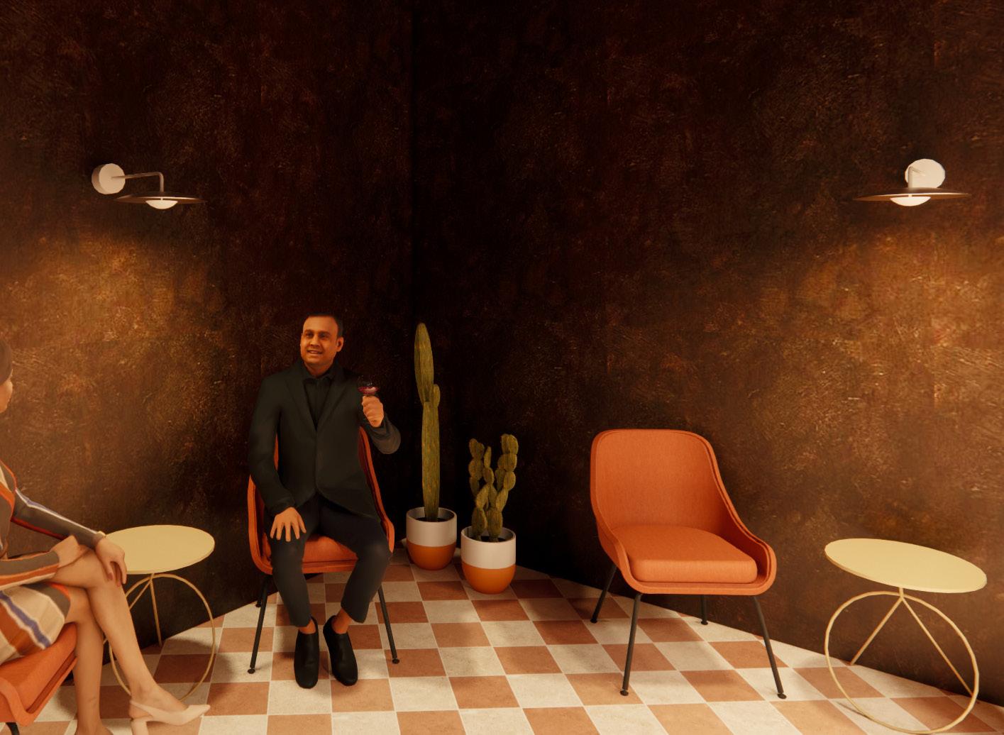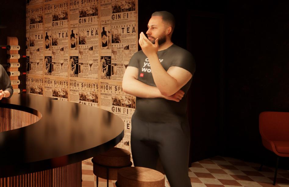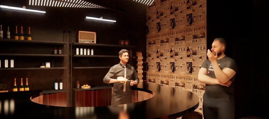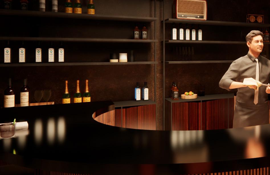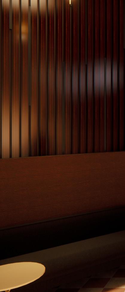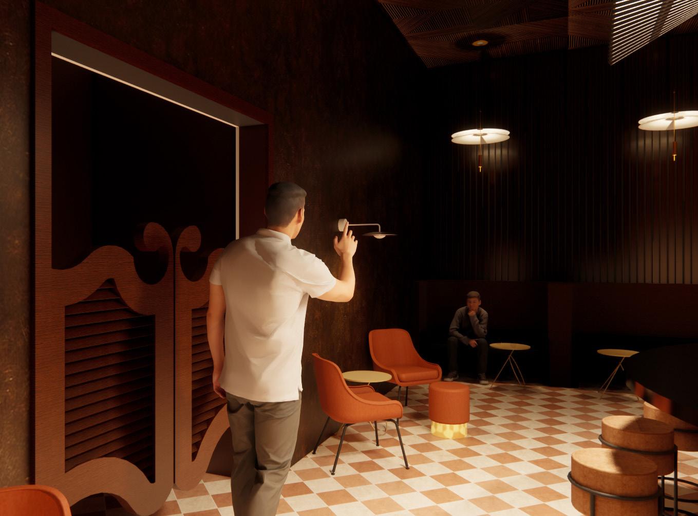The overall design of the speakeasy must function in the same capacity as a full size bar while not feeling overcrowded. This is accomplished by a large, central bar with ample seating.