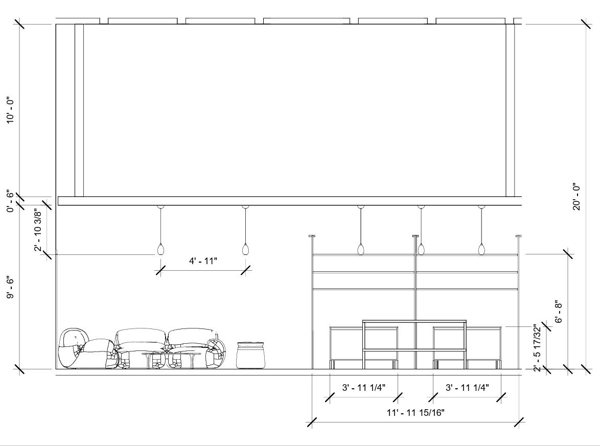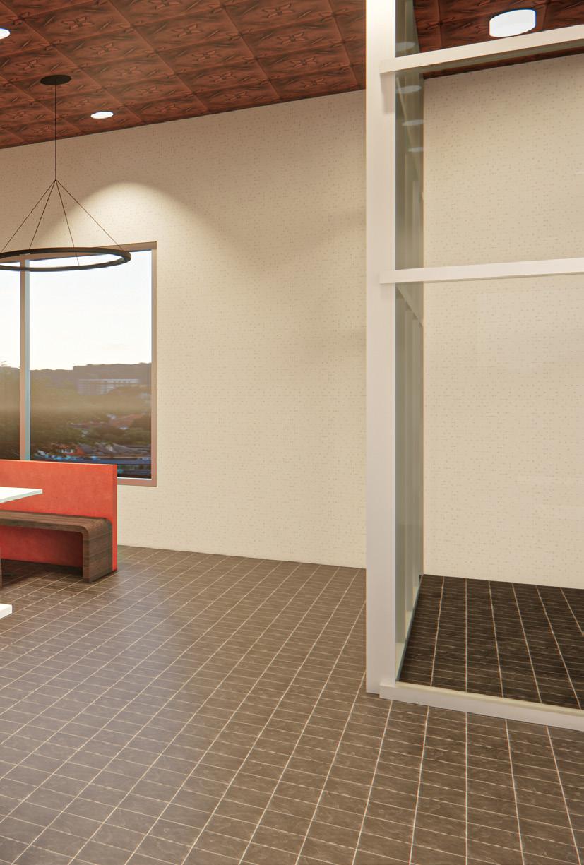 - Drop ceiling panel made of felt to help absorb the echo of the 20’ ceilings.