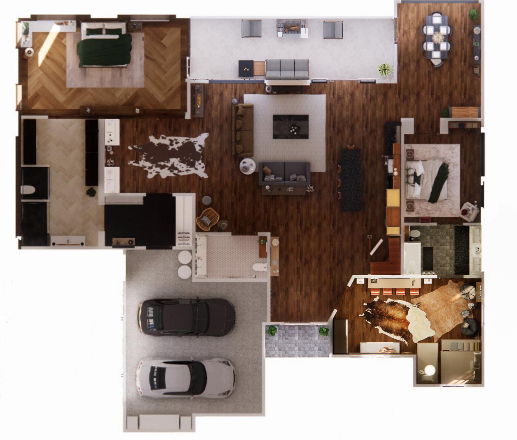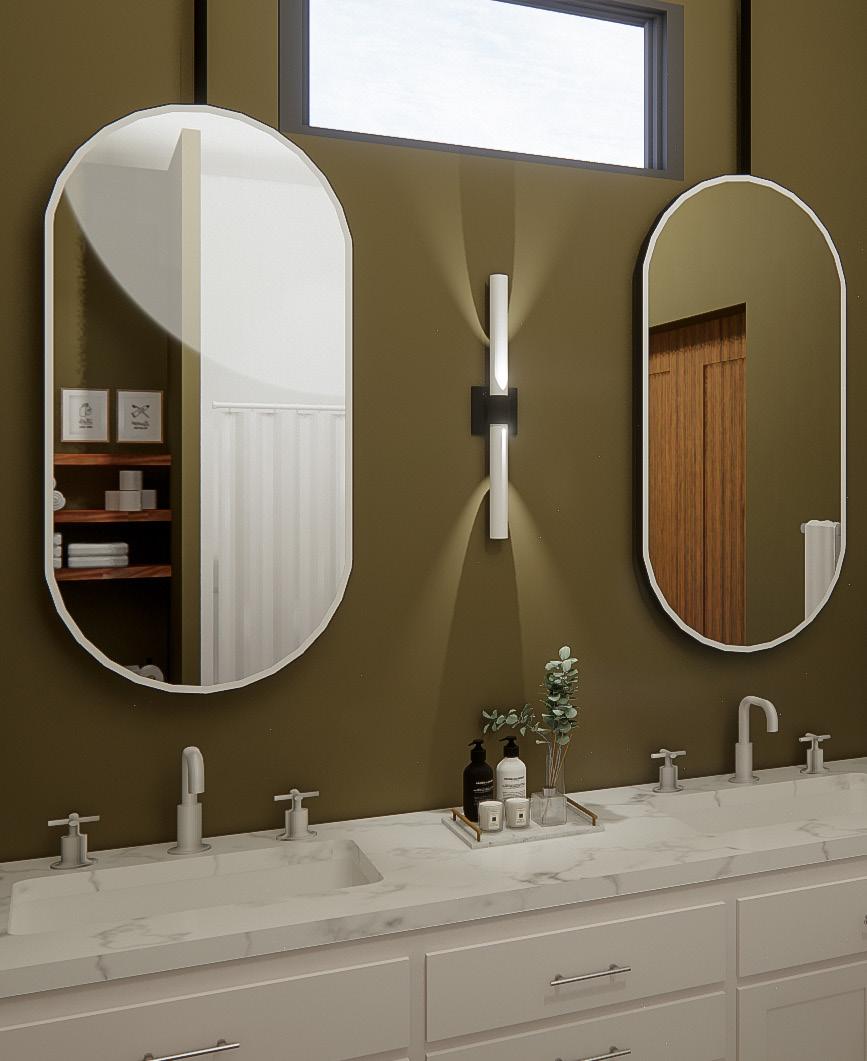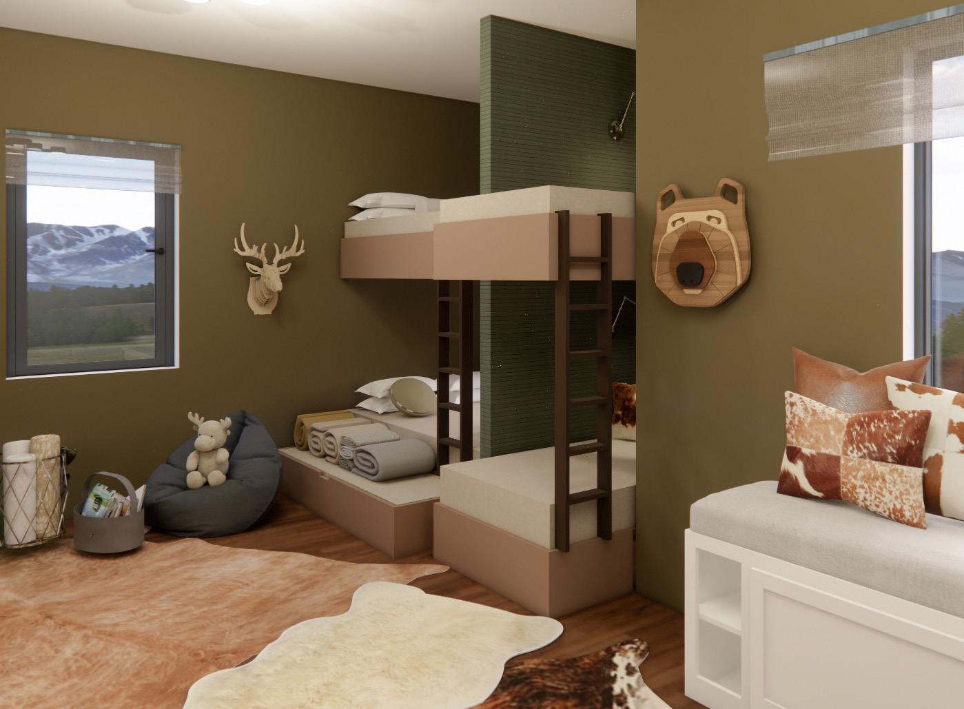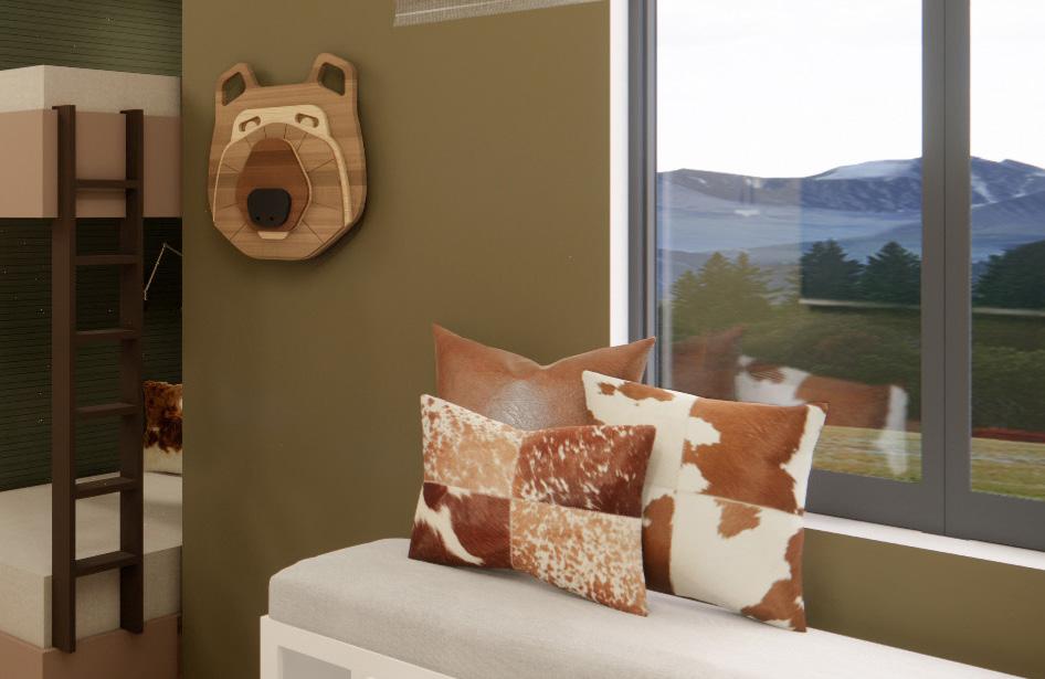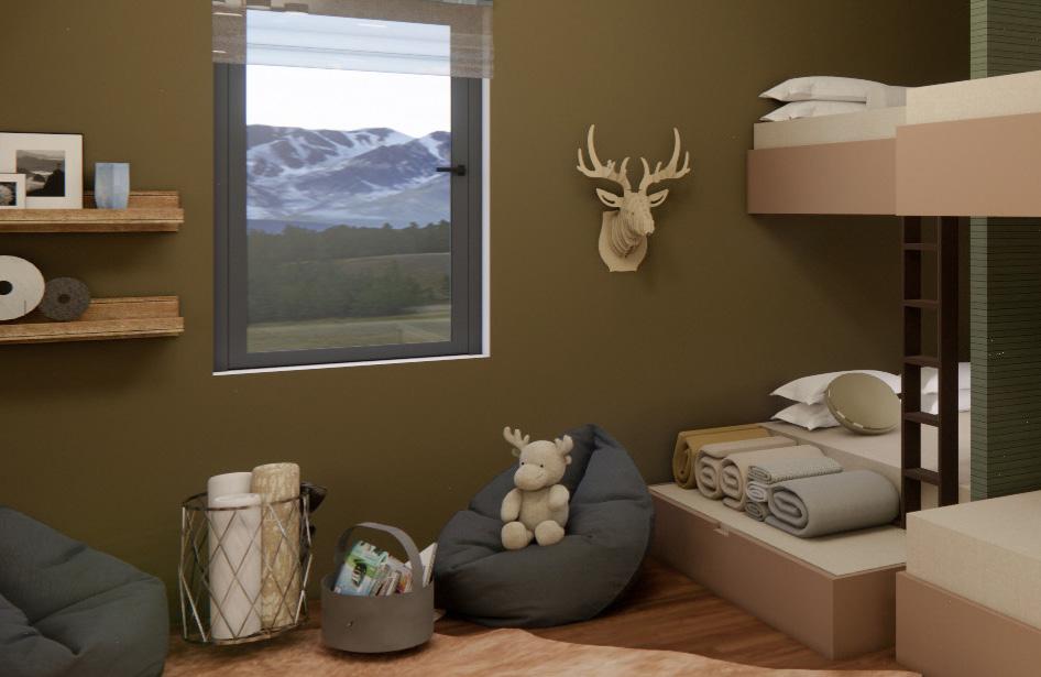 The concept for this home renovation was to showcase the owners’ love for the mountains of Colorado and meet their health needs in an aesthetically pleasing manner. The home must accomodate a wheelchair and a sensitivity to rough surfaces while creating a relaxing atmosphere. It must also allow for a large number of guests as the couple has recently retired and have more time for their grandchildren. Through the utilization of biophillic design and inspiration from their surroundings, the home is a calming space that encourages family time, rest, and the feeling of nature.