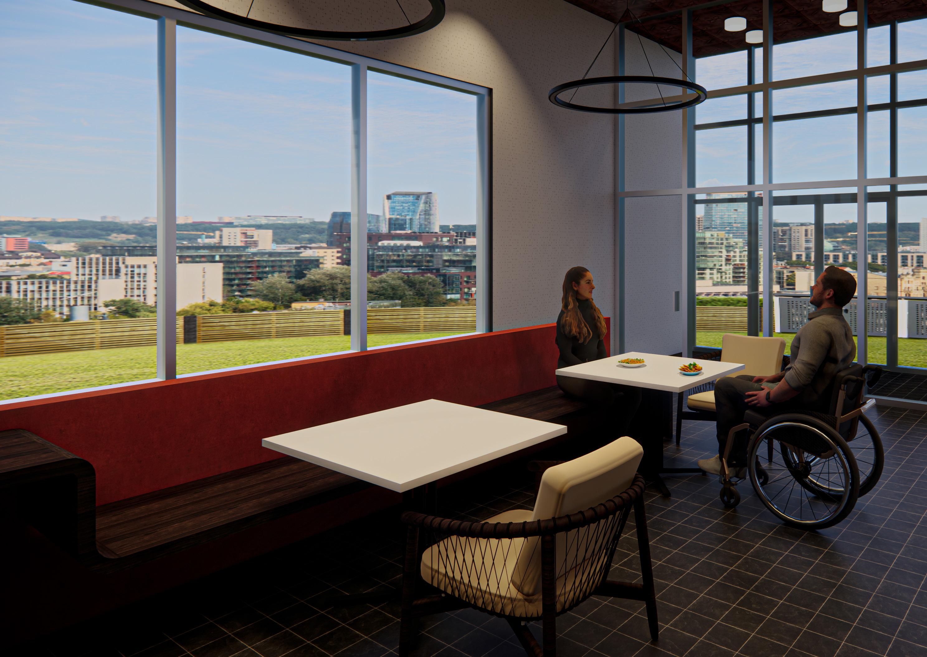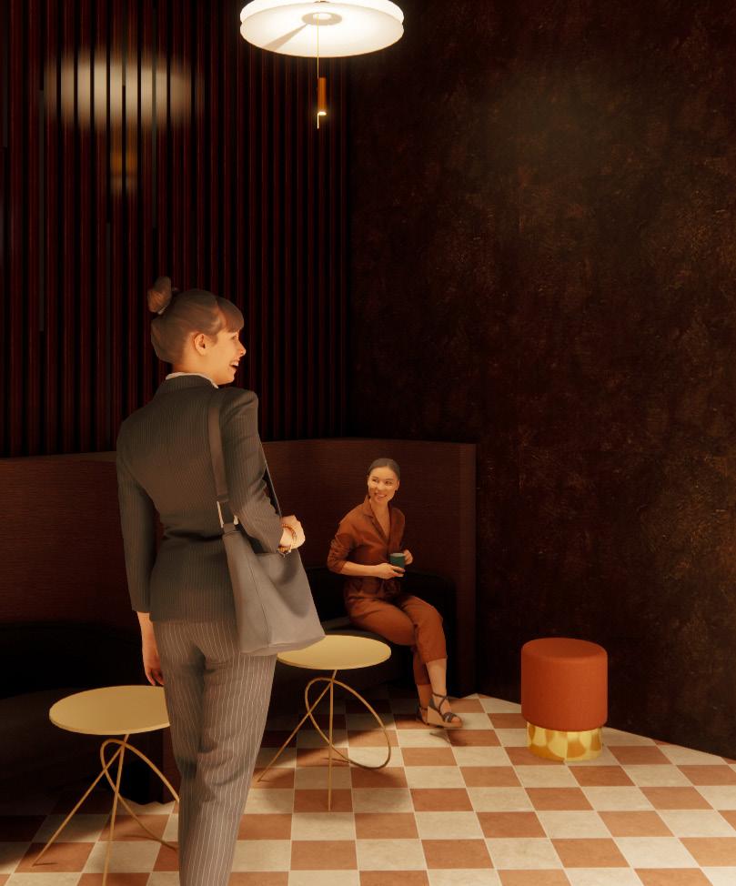 The concept for this small space was to create something targeted to the adults in the Austin, Texas area. A speakeasy, off the beaten path gives the older members of the community a new place to try, but it still feels like it has always been a part of the Austin culture. Through subtle touchs of burnt orange and western inspired materials, the new speakeasy fits in perfectly with the surrounding culture- creating a space fit for current students, alumni, and other visitors.