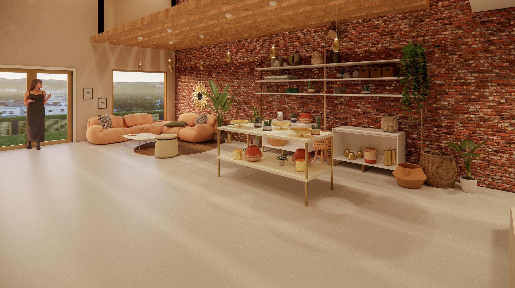 Design a retail space in an existing building that aesthetically meets the needs of the community.