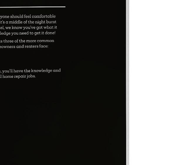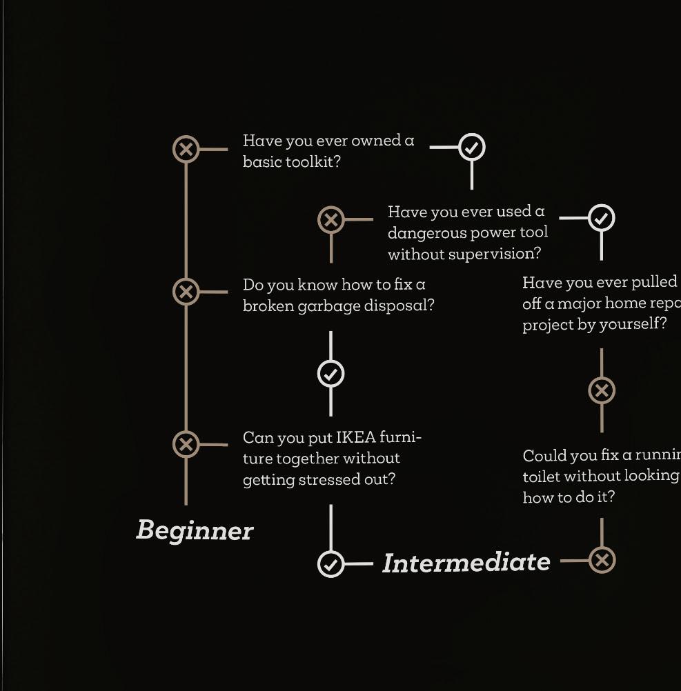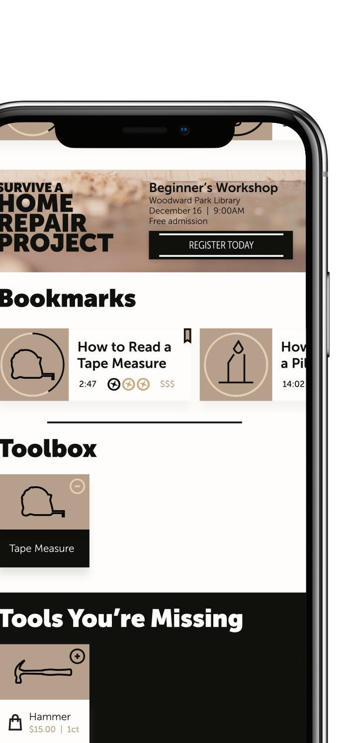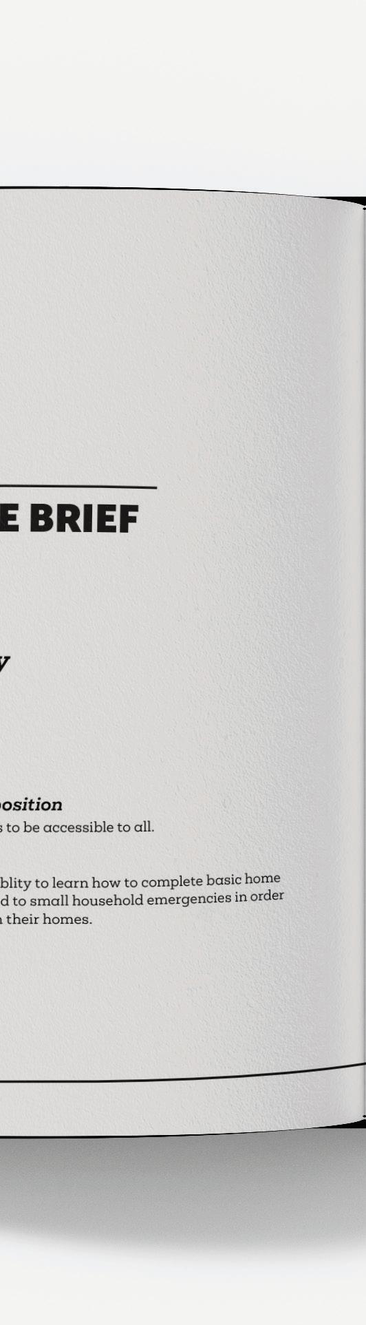 The brand and visual system has been applied across three deliverables that focus on increasing homeowners access to skills and tools. The free skills workshop encourages people to drop in and learn how to make basic repairs and handle minor home emergencies. The app makes a range of DIY knowledge available to anyone. Each skills video is accompanied by a visual and textual explanation. The vending machines free people from home improvement shopping during business hours and allow them to purchase the tools they need at any time.