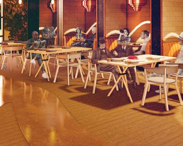Literature in action: Inspired by novels of Dicken’s, the second floor hosts the Chimes Diner, and the Olive Twist bar and lounge. A state of shimmer guides guests further into a dream-like state. Rippled stainless steel tiles are used to further the lucid, ever changing atmosphere between reality and what could be.