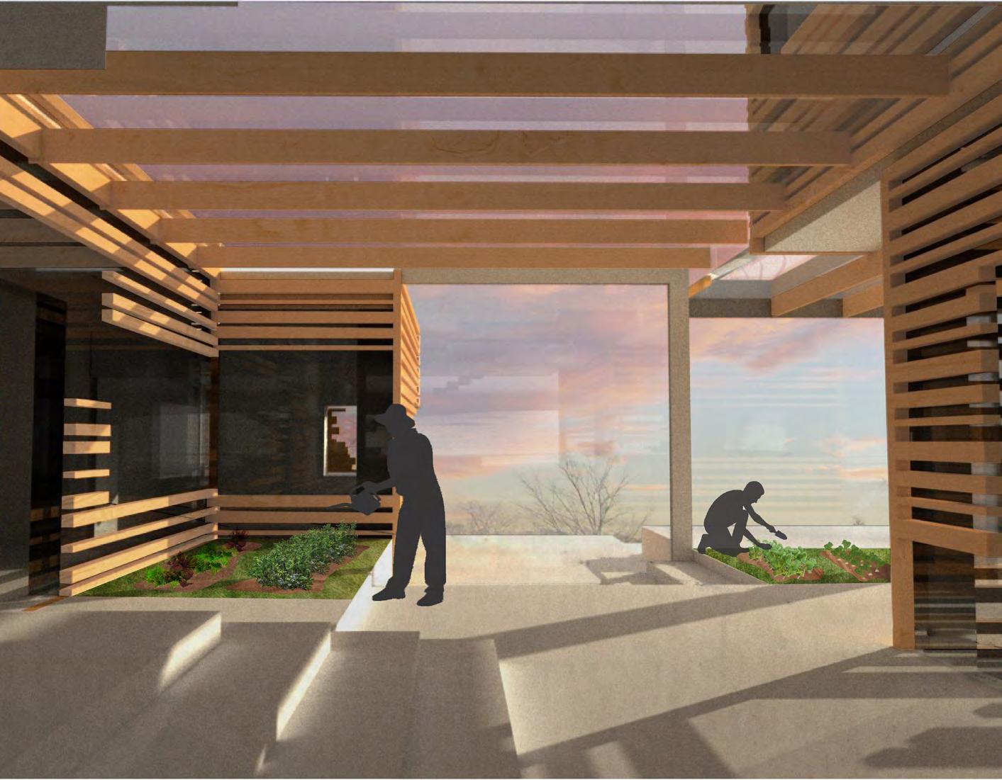 A ‘dwelling’ intertwining the contrasting thermal conditions which are demanded by the imagined lifestyle of a chef who grows their own ingredients. Working and living areas are framed by a garden, serving as a transitory cavity. It explores the use of greenery in spaces to counter the high-intensity spaces from the dweller’s busy work life in the kitchen.