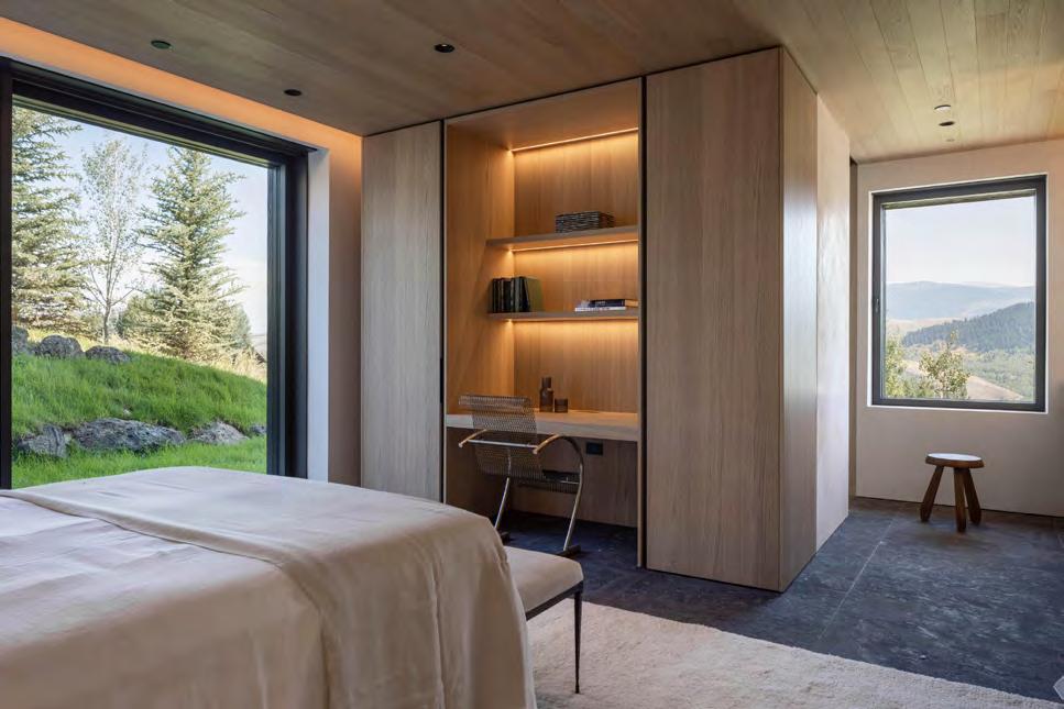 Curated to elevate the views of the Sleeping Indian mountains of Wyoming, the furnishing of this home finds companion between modernism and natural materials. The lavish yet comfortable stylings of a home are yet more embellished by the lush, rolling landscape it is nestled within. The built and the natural are married with grace and delicacy.