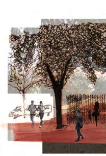 Following our study of the site, we identify three different areas where we believe it is necessary, due to the nature of the spaces themselves, to act differently. In this way, we define a sequence of different spaces. The connection between the street and the surrounding spaces is determined by visual elements: the degree of transparency between spaces, determined by walls and fences, the choice of paving and its boundaries, the presence of greenery.