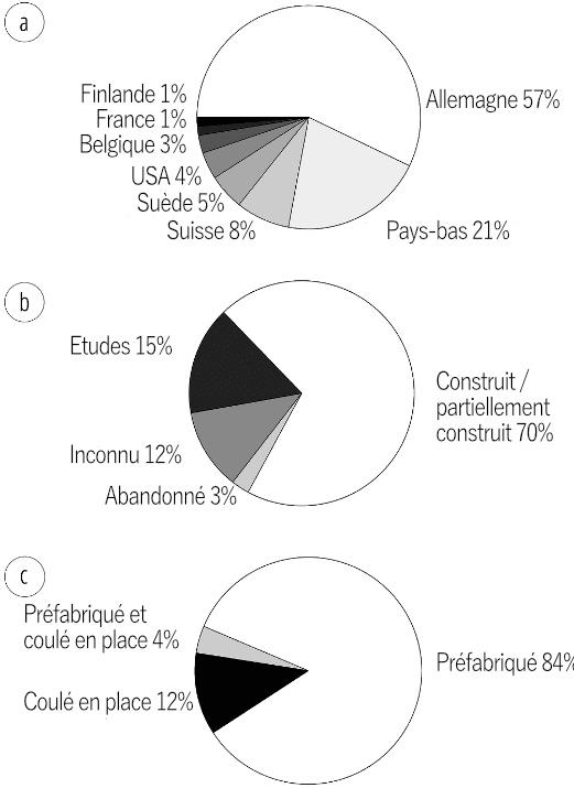 Des pays européens comme l’Allemagne, les Pays-Bas et la Suède, ont réalisé de nombreux projets en béton de réemploi ces vingt dernières années. Ceux-ci concernent le réemploi d’éléments structurels en béton préfabriqué (84%) et coulés en place (16%) dans ce même usage, en profitant notamment du gisement issu des systèmes de préfabrication lourde.