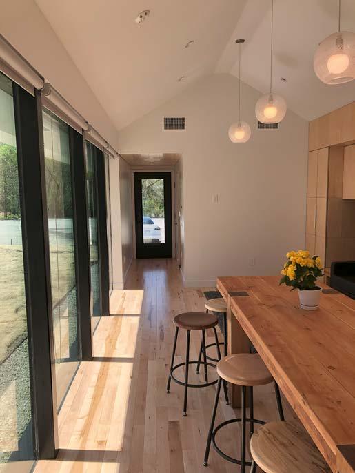 Haven studio is designed to be as energy efficient as possible. In accordance with the Solar Decathlon requirements, we have 12 solar panels on the roof, which supplies all of the energy to the home and supplements the energy usage of KU’s Design Build warehouse. Our exterior walls are prefabricated by BuildSmart, who creates prefabricated panels constructed of a standard 2X4 stud wall and wrapped in TimberHP Insulation giving our walls a value of R-42 and our roof a value of R-36. The HVAC system is comprised of a mini split as well as a Energy Recovery Ventilator (ERV) and all of our appliances are energy star rated. These are all factors that allowed our home to not only compete well but also be an inspiration for future sustainable design.