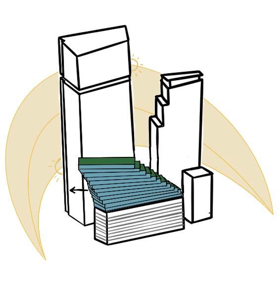 Each level peals away to define the skyline and respect the air space of the Duo Towers.