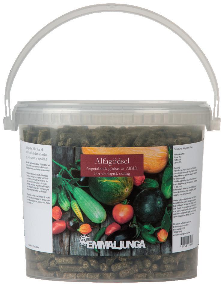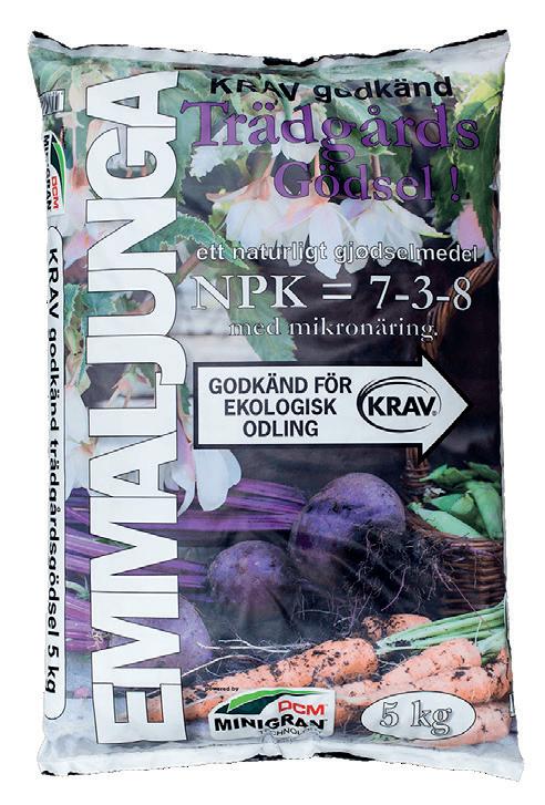 En ny produkt med ett exklusivt långtidsverkande gödsel. Tack vare ny teknik kan man nu tillverka KRAV-godkända gödselmedel med högre fosfor- och kaliuminnehåll än tidigare, vilket ger bättre blom- och fruktsättning. Jordblandningen består av torv av yrkesodlarkvalitet, 40 kg lera per kbm, samt fint stenmjöl. Stenmjölet har ett högt innehåll mineraler, vilket förbättrar smaken på frukt och grönsaker, samt ger ett förbättrat skydd mot sjukdomar.