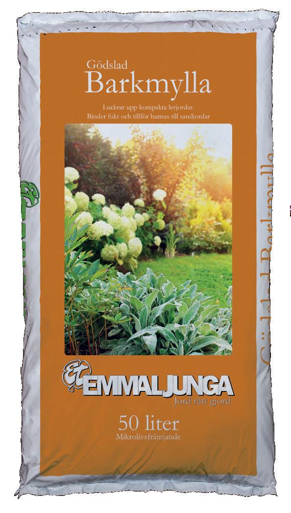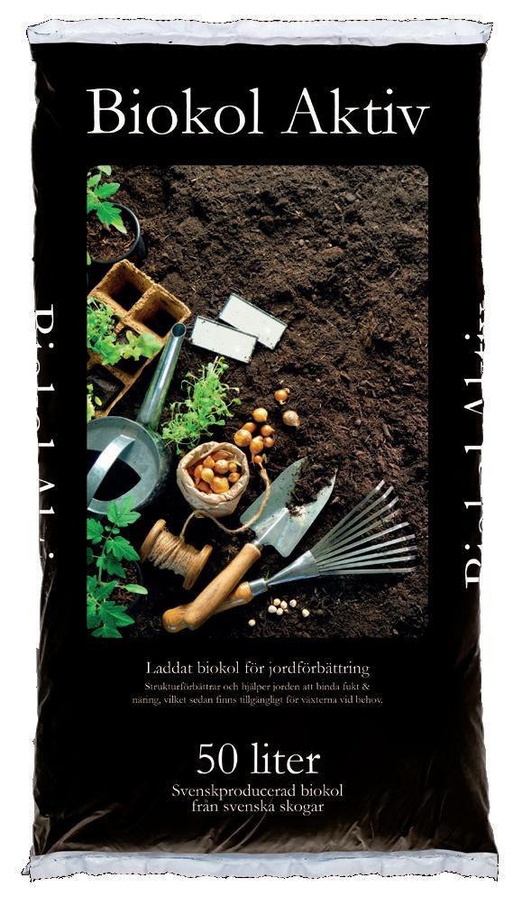 Även barkmull och aktivt kol kan användas för att förbättra jordens struktur och fukthållning. Vid inblandning av bark och kol bör man samtidigt tillföra näring. Barken förbrukar kväve när den bryts ner och kolet suger åt sig näring. Kolet buffrar dock bara näringen men förbrukar inget. Mycket väldränerad jord har därför att vinna på en inblandning av kol eftersom näring som tillsätts inte lakas ur jorden och försvinner ner i grundvattnet. Biokol bryts i princip inte ner som bark gör, så även om biokol är betydligt dyrare än bark så blir det betydligt billigare i längden. Emmaljunga´s ”Biokol Aktiv” är en blandning av biokol och hönsgödselkompost, färdig att använda. Tillsätt 2-8 liter per kvadratmeter beroende på den befintliga jordens sammansättning.