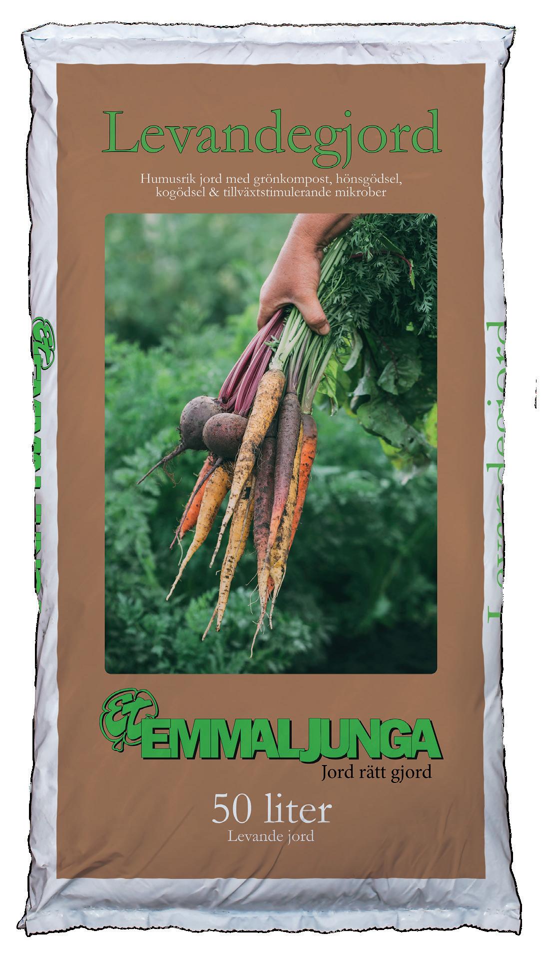 Under senaste tre åren har Emmaljunga genom samarbete med ett olika leverantörer och tagit fram en jord med bästa möjliga förutsättningar för att odla så naturligt som möjligt, och att skapa förutsättningar för en levande jord. Vårt mål är att skapa en jord som mår bra. Mår jorden bra så mår mikrolivet bra, och tillväxten och blomningen blir optimal! Vi känner att vi har lyckats men fortsätter att utveckla den och letar hela tiden efter fler och ännu bättre naturliga tillsatser.