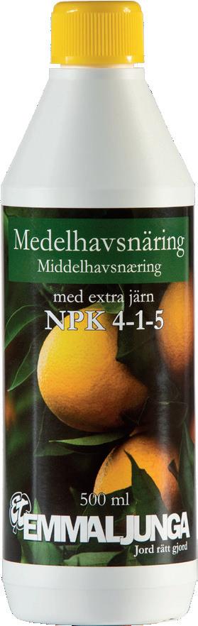 Ett välbalanserat näringstillskott för medelhavsväxter. Extra tillsats av järn fördjupar bladens gröna färg.