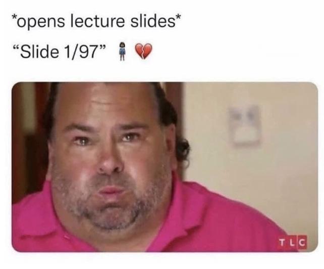 Well, I need to start coming up with my own snappy comebacks. Like the other day when he asked if I was alive, and I responded “no, I’m actually dead”. I’ve even considered bringing a pillow, blanket, eyemask, and pajamas to class.