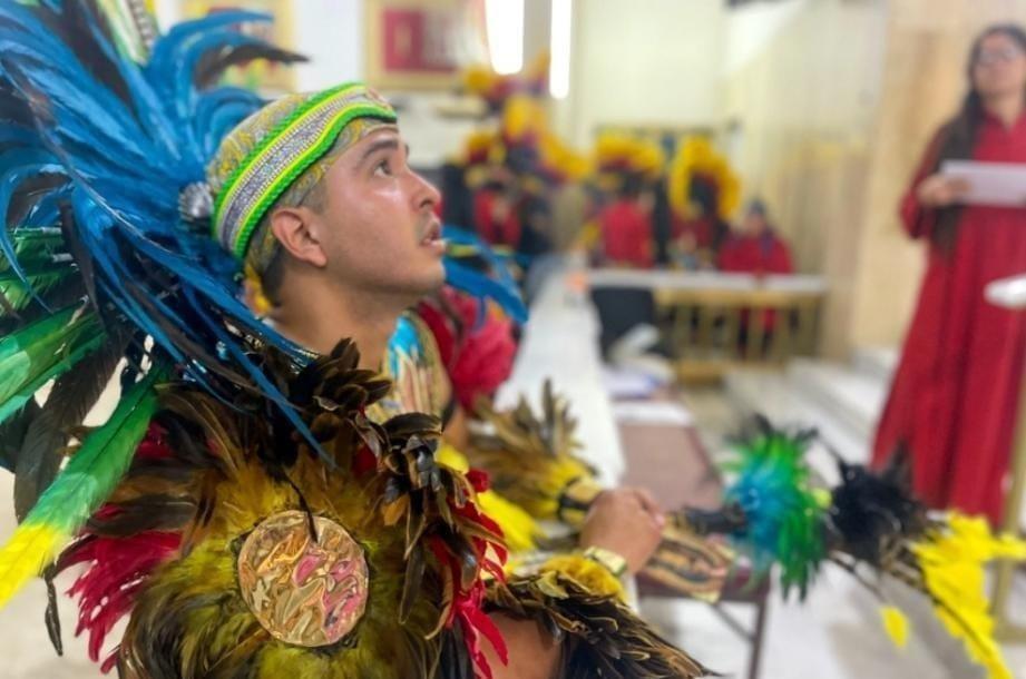 cercanía con la Virgen Madre, con la Virgen Morena. Los que danzan saben de la importancia del cuerpo. La danza es todo un arte, toda una armonía, toda una estructura, pero también hay un desgaste físico, hay un desgaste del cuerpo. En la danza hay rostros de jóvenes que llegan literalmente sudando, algunos de ellos con los pies lacerados… ahí está jugando un papel importante el cuerpo, el cuerpo que habla, el cuerpo que es encuentro, el cuerpo que está manifestando un mensaje actual. De tal suerte que los movimientos corporales son los vasos comunicantes, que tienen como cabeza a Jesucristo, y como corazón a la virgen de Guadalupe.