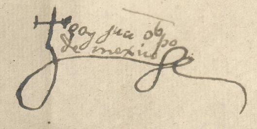 Fig. 10: En la propia firma. Donde se aprecian corregidas las palabras “Fray” y “obispo”.