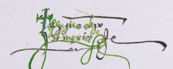La rúbrica de la firma es la línea o especie de dibujo que se realiza o no debajo o por encima de la firma. Resulta extraño que en el documento se trace la rúbrica de la firma la misma persona que ejecutó el texto documental y no el propio obispo.