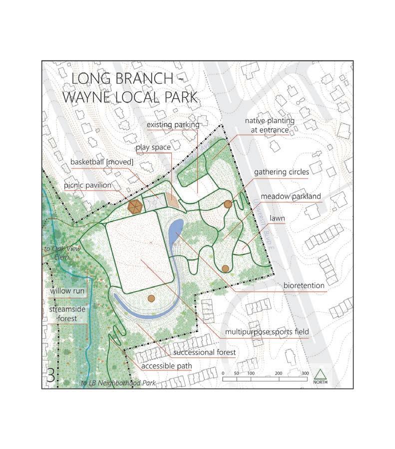 elementary school. This is a conceptual site plan capacity of the Long Branch forest patch to support connect the parks together while building the the forest patch.