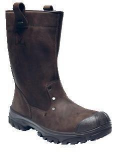 Sicherheitsschuh, besonders geeignet für feuchte Arbeitsbedingungen, mit Stahl- oder Kompositkappe, die gegen Stöße und Kompression beständig ist. Mit geschlossener Ferse, öl- und kraftstoffbeständig, antistatisch, Energieaufnahme im Fersenbereich und durchstoßhemmender Stahlplatte zum Schutz vor dem Eindringen von (scharfen) Gegenständen.