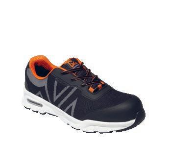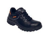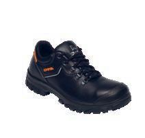 Sicherheitsschuh mit Zehenschutzkappe, geschlossener Ferse, antistatischen Eigenschaften und Stoßdämpfung in der Ferse. Ausgestattet mit einer durchstoßhemmenden Stahlzwischensohle (getestet mit 4,5 mm Nagel). Mit profilierter Sohle für zusätzlichen Grip.