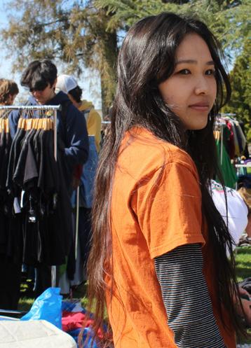 Students browse the Cal Poly Sustainable Fashion Club’s clothing swap and sale.