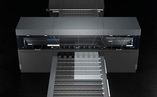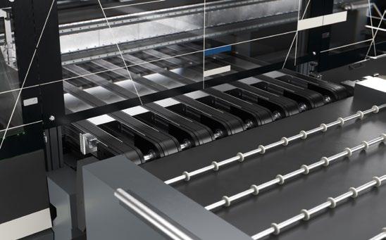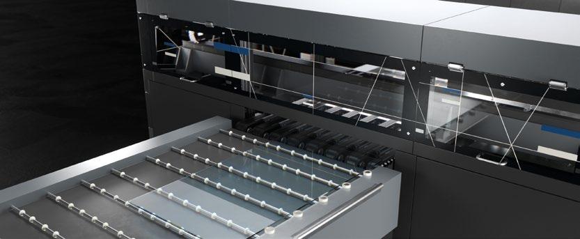 El transporte del vidrio durante la impresión se efectúa mediante correas calibradas, controladas y accionadas por un motor sin escobillas que garantiza la más alta precisión.