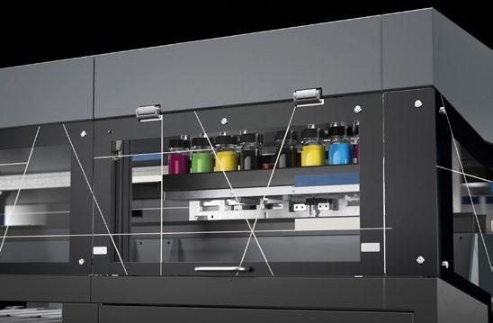 Tintero instalado a bordo, tubos de conexión en corto circuito: velocidad de limpieza y cambio de color, sistema de mezcla del color automático mediante motor e imanes.