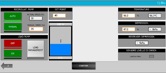 El software de supervisión permite controlar los parámetros relativos a la gestión de la tinta, como temperatura, presión, bombas de recirculación y sensores de nivel.