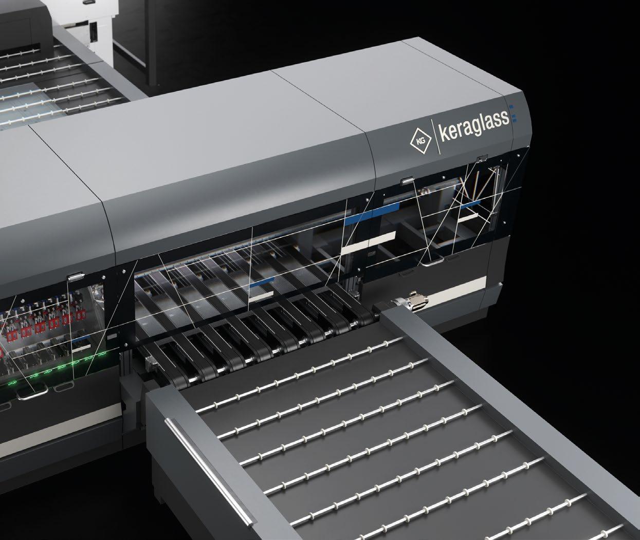 Keraglass ofrece al cliente una solución completa y automática que reduce los tiempos muertos de lavado, de limpieza del vidrio, de la diversas regulaciones y el coste de la mano de obra.