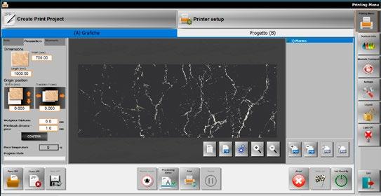 La interfaz del operador es sencilla y permite gestionar fácilmente aun las fases más complejas del trabajo interviniendo en todos los parámetros de funcionamiento de la máquina y en aquellos necesarios para optimizar el archivo de impresión en caso de necesidad.