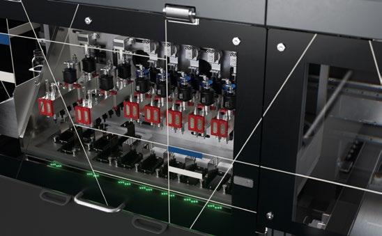 Incrível cor e velocidade de impressão, uma eletrônica para cada cabeçote com 7 gotas variáveis, substituição e alinhamento rápido caracterizam os cabeçotes de impressão da vivida.