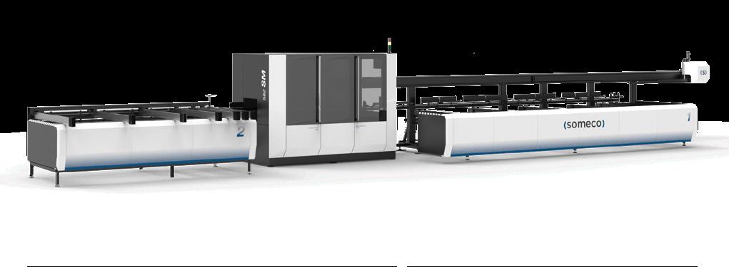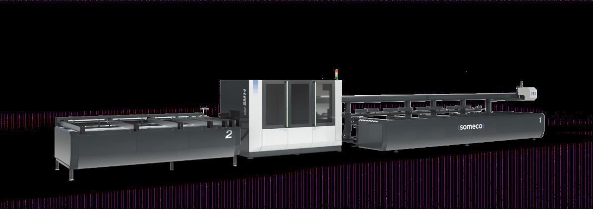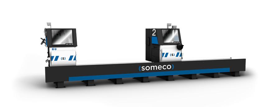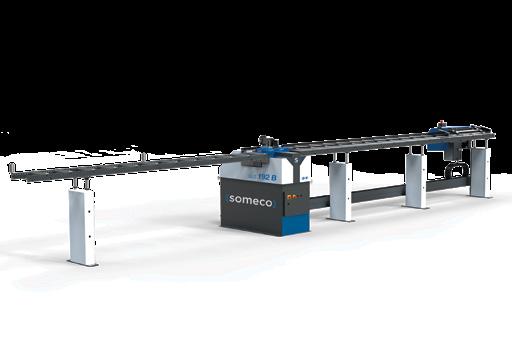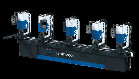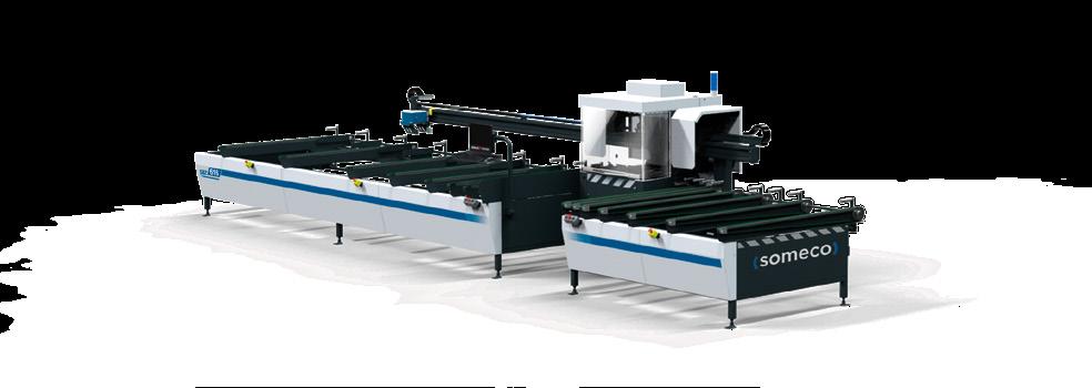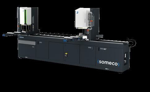 Centro di lavoro CNC a barre passanti per fresatura, foratura e taglio, specializzato nella produzione di serramenti in PVC. Sul modulo di fresatura CNC sono installati 14 elettromandrini, su 2 unità distinte. Questa configurazione consente un notevole risparmio di tempo, permettendo la lavorazione simultanea su tutto il bordo del pezzo, indipendentemente dal suo orientamento. Il modulo di taglio è dotato di una lama di Ø 500 mm con movimento CNC a 3 assi. L‘unità di scarico è costituita da un magazzino a nastro trasversale per lo scarico di pezzi lavorati lunghi fino a 3500 mm.
