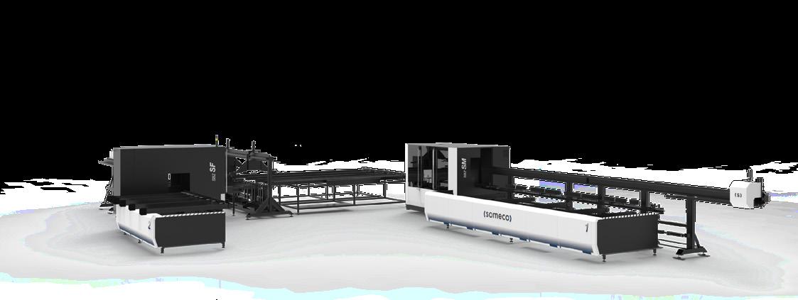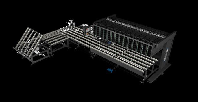 Linea di lavoro automatizzata CNC a barra passante costituita da unità specifiche per fresatura, foratura, intaglio a V, taglio, contornatura e avvitatura rinforzi. La linea è studiata per produzioni ad alta capacità. SBZ 625/26 è composta da 2 linee modulari: