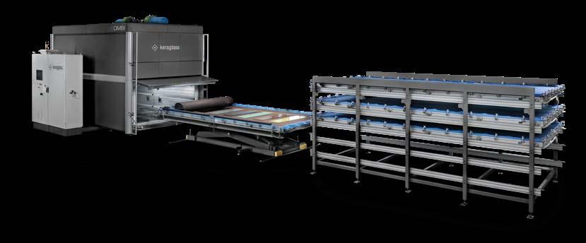 With Dinamica, Keraglass expands its range of glass decoration solutions with an innovative and technologically advanced system designed for next-generation industry. The line combines the flexibility of digital printing with the speed of traditional screen printing. Glass moves beneath fixed colour bars, allowing monochrome or multicolour graphics to be produced in a single pass. This speeds up production and optimises the reproduction of complex images. Ceramic ink, kept in continuous recirculation, ensures quick production restart and constant machine operation, reducing downtime and guaranteeing high productivity. The system also integrates vision technology that detects imperfections and applies real-time corrections. Dinamica is a versatile, highperformance solution ideal for the automotive, household appliance and furnishing sectors, combining aesthetic quality, precision and production efficiency in a single advanced digital printing system.