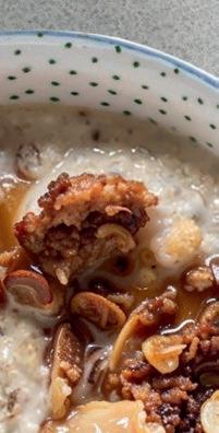 PORRIDGE ist nicht gleich Porridge: Hier kann man nach Lust und Laune mit Getreideflocken spielen: DINKEL, ROGGEN, KAMUT, EMMER oder GERSTE eignen sich ebenso gut, ggf. die Flüssigkeitsmenge adaptieren, da die unterschiedlichen Getreide nicht dieselben Saugeigenschaften aufweisen.