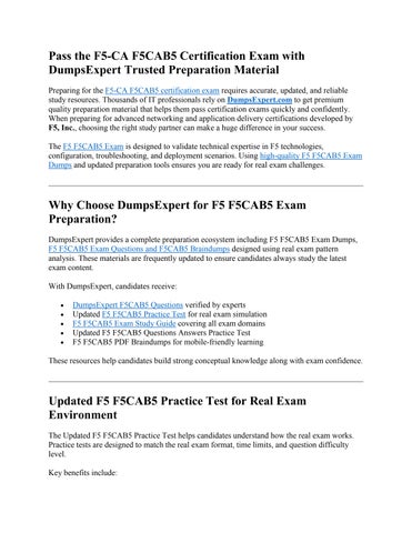 When combined with F5CAB5 Braindumps and the F5 F5CAB5 Exam Study Guide, candidates get complete exam preparation coverage.