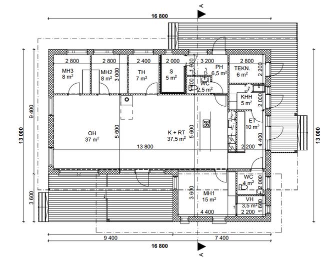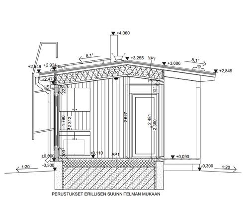 Noin100m2kokoinenvapaaajanasunto.Kohteeseen tehtyluonnosuunnitelma talomallinpohjalta,joka kuitenkinlopultamuuttui todellapaljon.